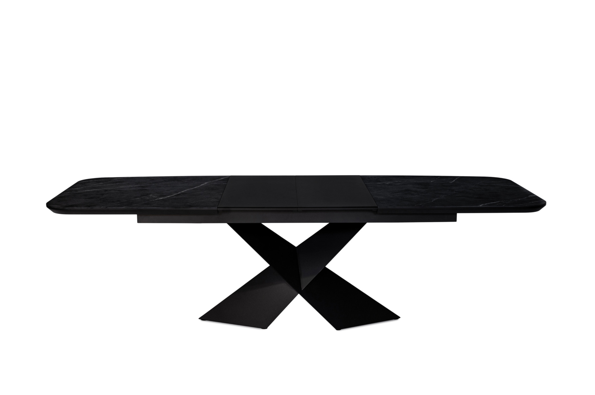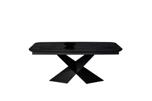 Stół A28 z funkcją rozkładania to nowoczesna interpretacja klasycznej elegancji – harmonijne połączenie wyrazistego designu, trwałości i funkcjonalności. Blat w kształcie beczki wykonany został z spieku kwarcowego Calacatta Black Groszek na płycie MDF, który zachwyca głęboką, czarną barwą przełamaną subtelnymi, jasnymi żyłkami. Delikatnie matowa powierzchnia o strukturze groszku nadaje meblowi wyjątkowego, ekskluzywnego charakteru.