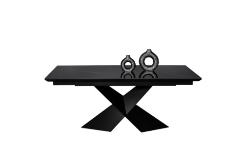 Stół A28 to nowoczesny, elegancki mebel, który łączy wyrafinowany styl z praktycznymi rozwiązaniami. Zaprojektowany z myślą o nowoczesnych wnętrzach, wyróżnia się blatem z efektownego spieku kwarcowego Nero Marquina w połysku, osadzonym na trwałej płycie MDF i wspartym na solidnej, geometrycznej nodze malowanej proszkowo.