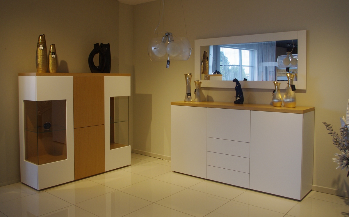 APOLLO II – BIAŁE MEBLE LAKIEROWANE Z ELEMENTAMI DĘBU NATURALNEGO