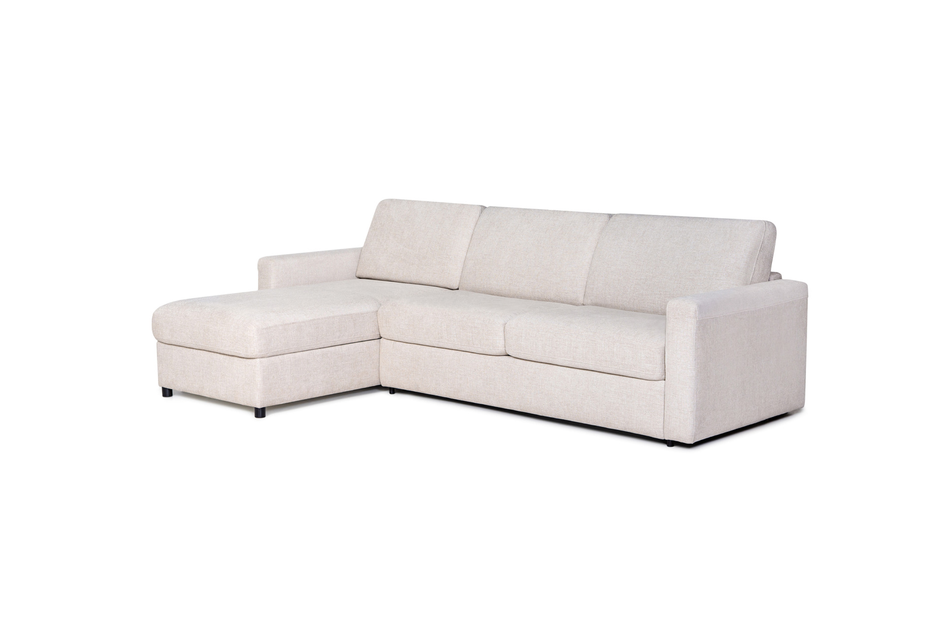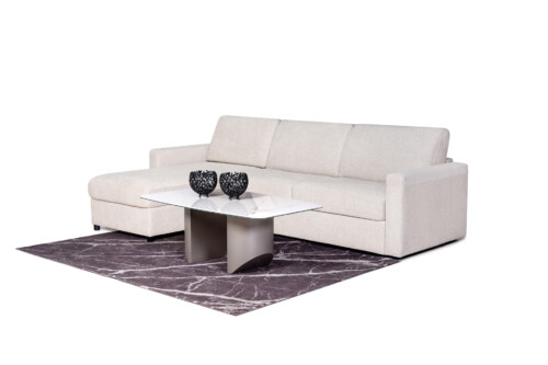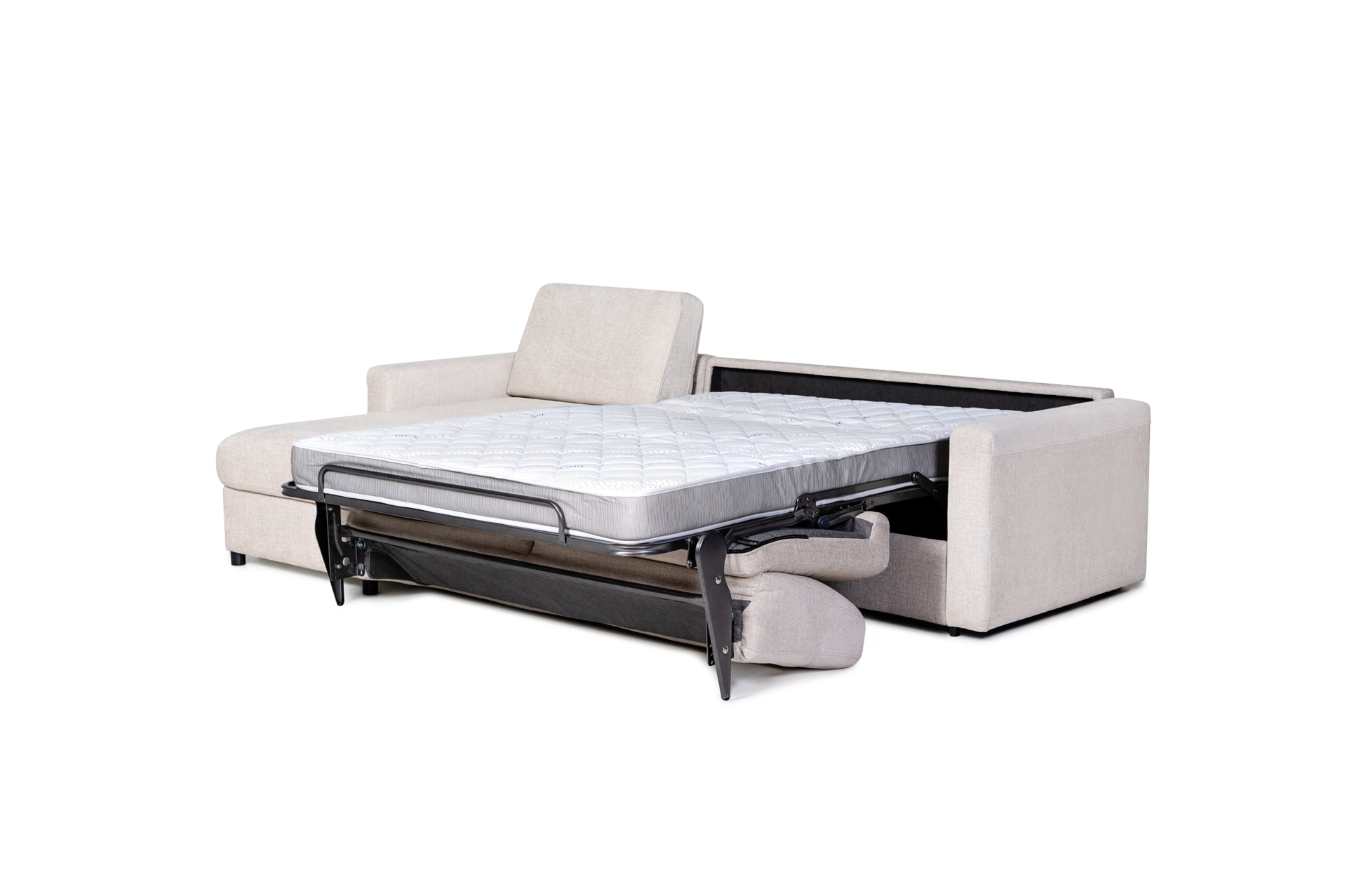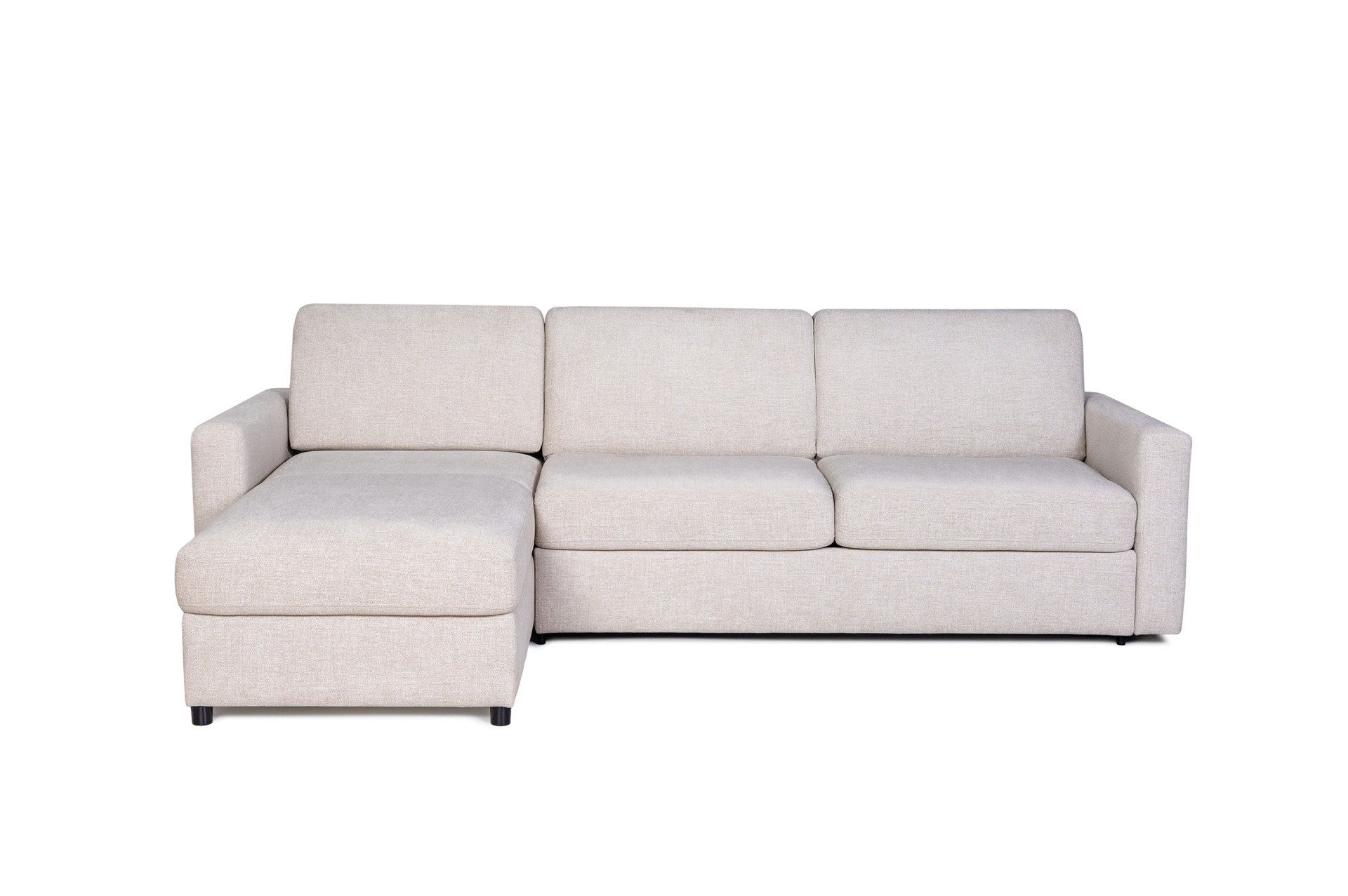 Narożnik o wymiarach 170 x 265 cm został zaprojektowany tak, aby zapewniać wygodne miejsce do wypoczynku w ciągu dnia oraz pełnowymiarowe, komfortowe łóżko na noc – wszystko dzięki zastosowaniu systemu spania typu włoskiego, znanego z łatwości obsługi i wysokiej jakości wykonania.
