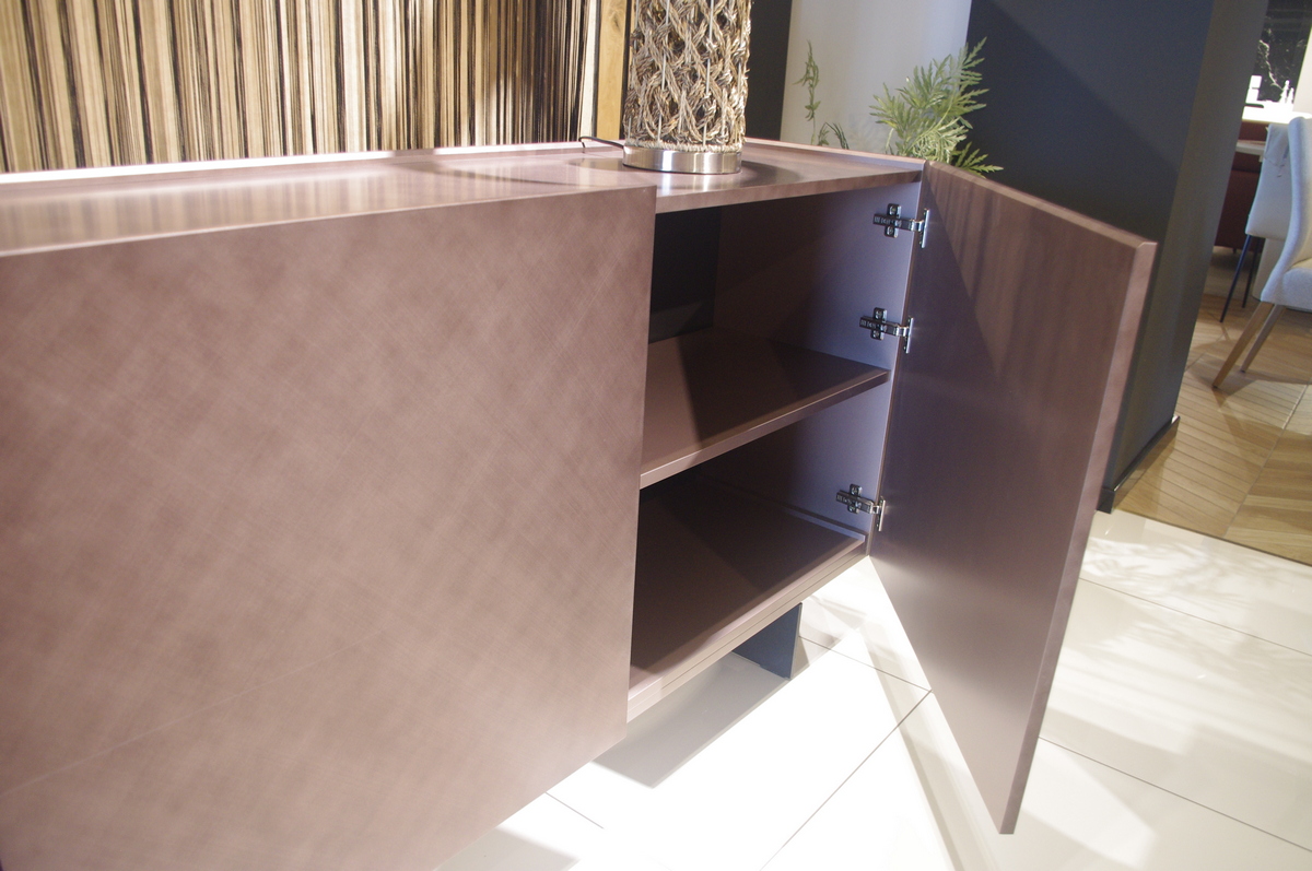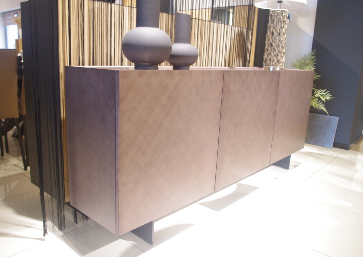 Komoda wykonana jest z mdfu lakierowanego z efektem przecieranej stali w kolorze brąz.