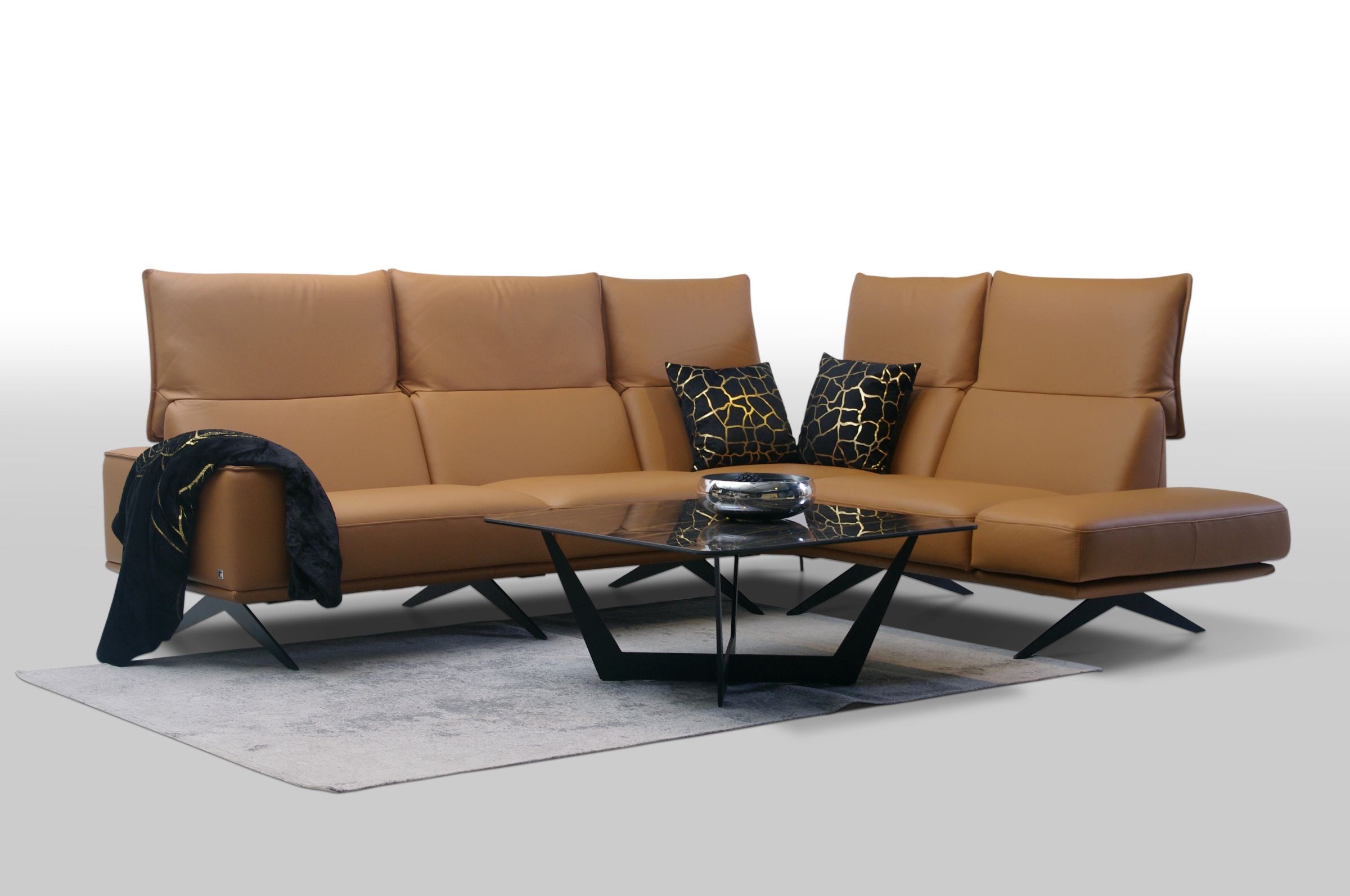 Niezwykle wygodny i kompaktowy model Bruno – elegancki narożnik na wysokich nogach z głębokim siedziskiem zachwyca wyszukaną formą i połączeniem niebanalnego designu. Bardzo wygodne siedziska wypełnione pianką wysokoelastyczną połączone z rewelacyjnym systemem łamanych oparć gwarantują wygodę użytkowania w każdej sytuacji. Metalowe smukłe nogi ułożone w kształt litery “X” dodają narożnikowi niebywałego piękna.