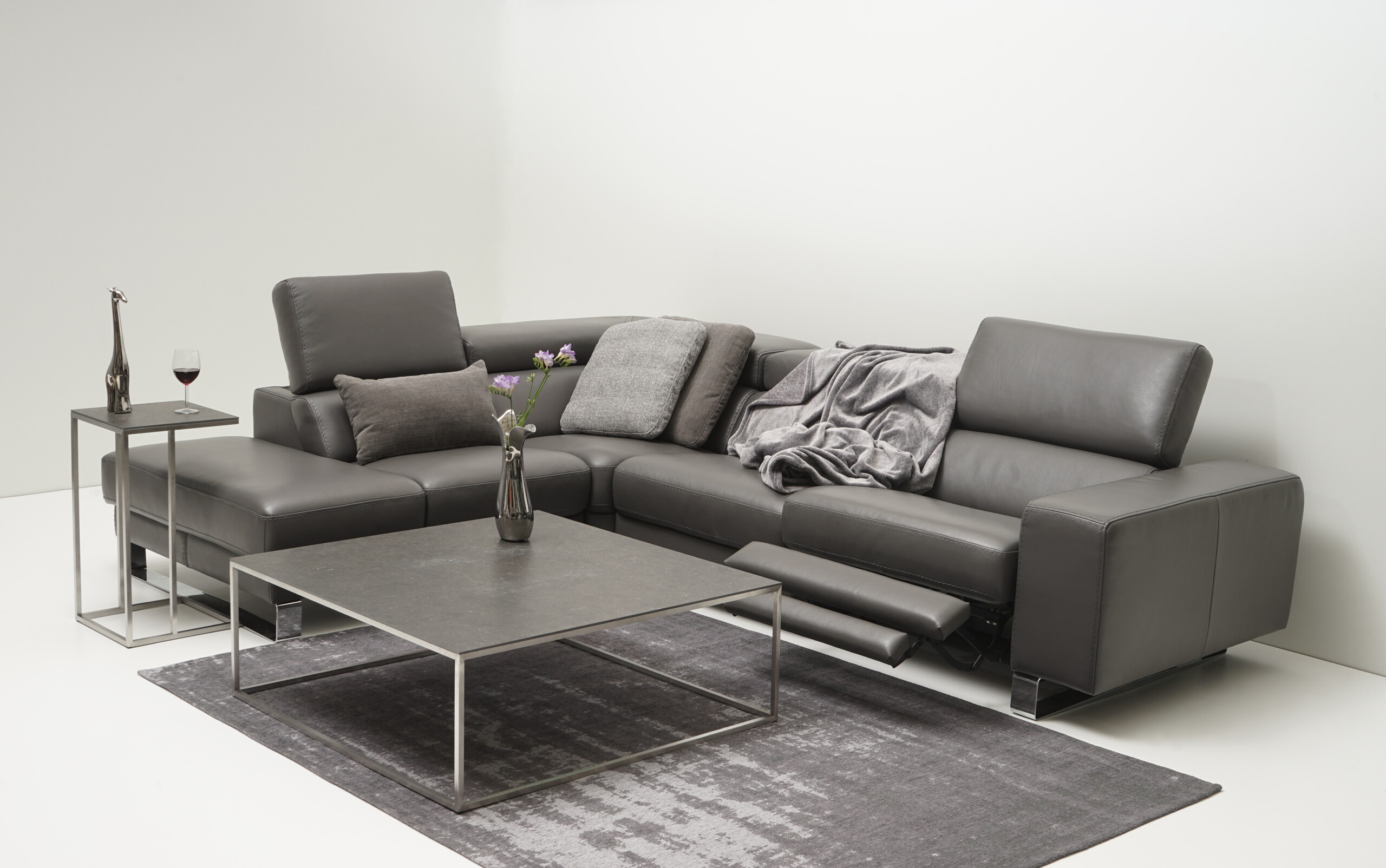 Bugamo II – narożnik w kształcie L na płozach z funkcją relaks elektryczny