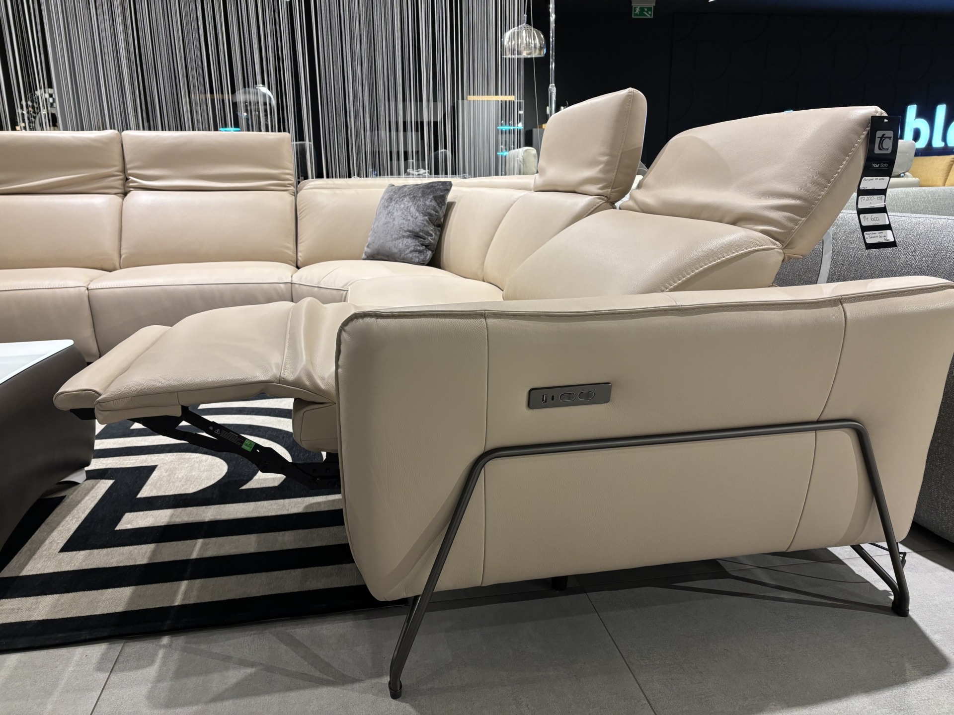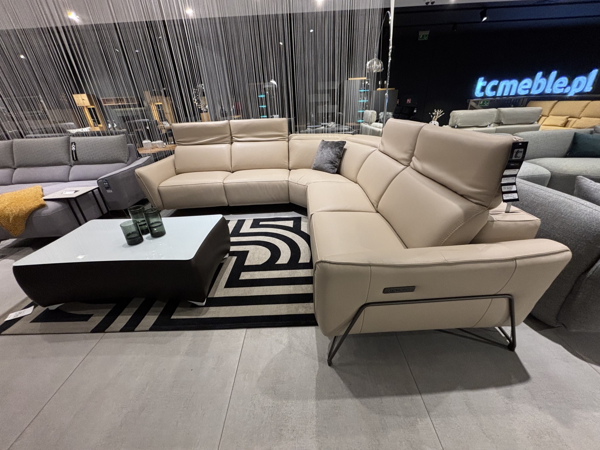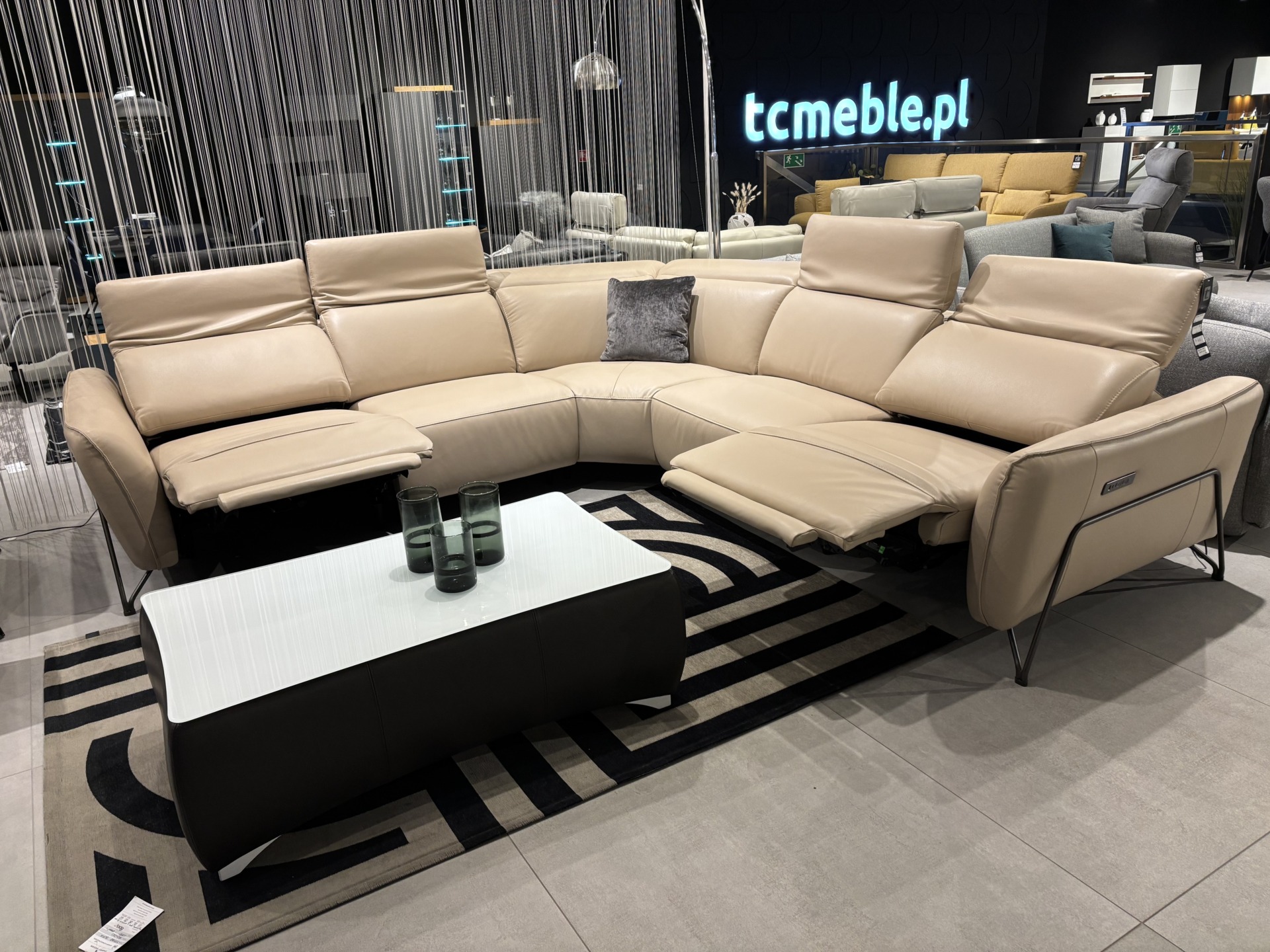CD.6076 – NAROŻNIK W BEŻOWEJ SKÓRZE DWA RELAXY ELEKTRYCZNE -15% 14.600 ZŁ