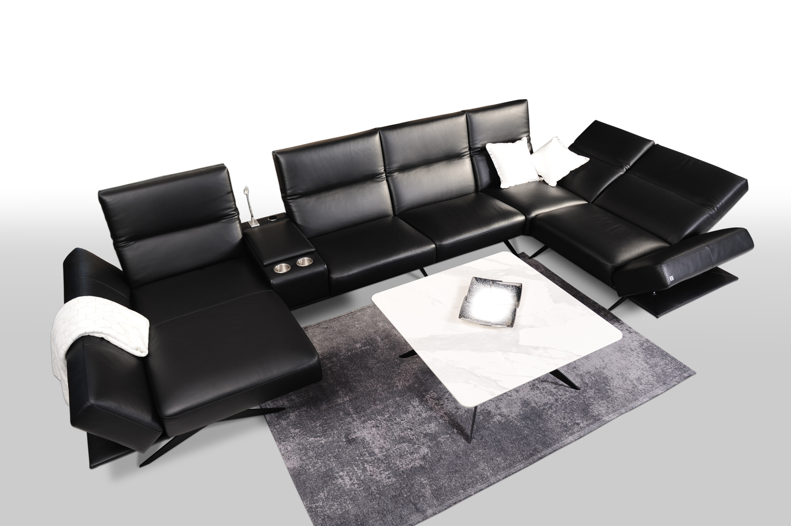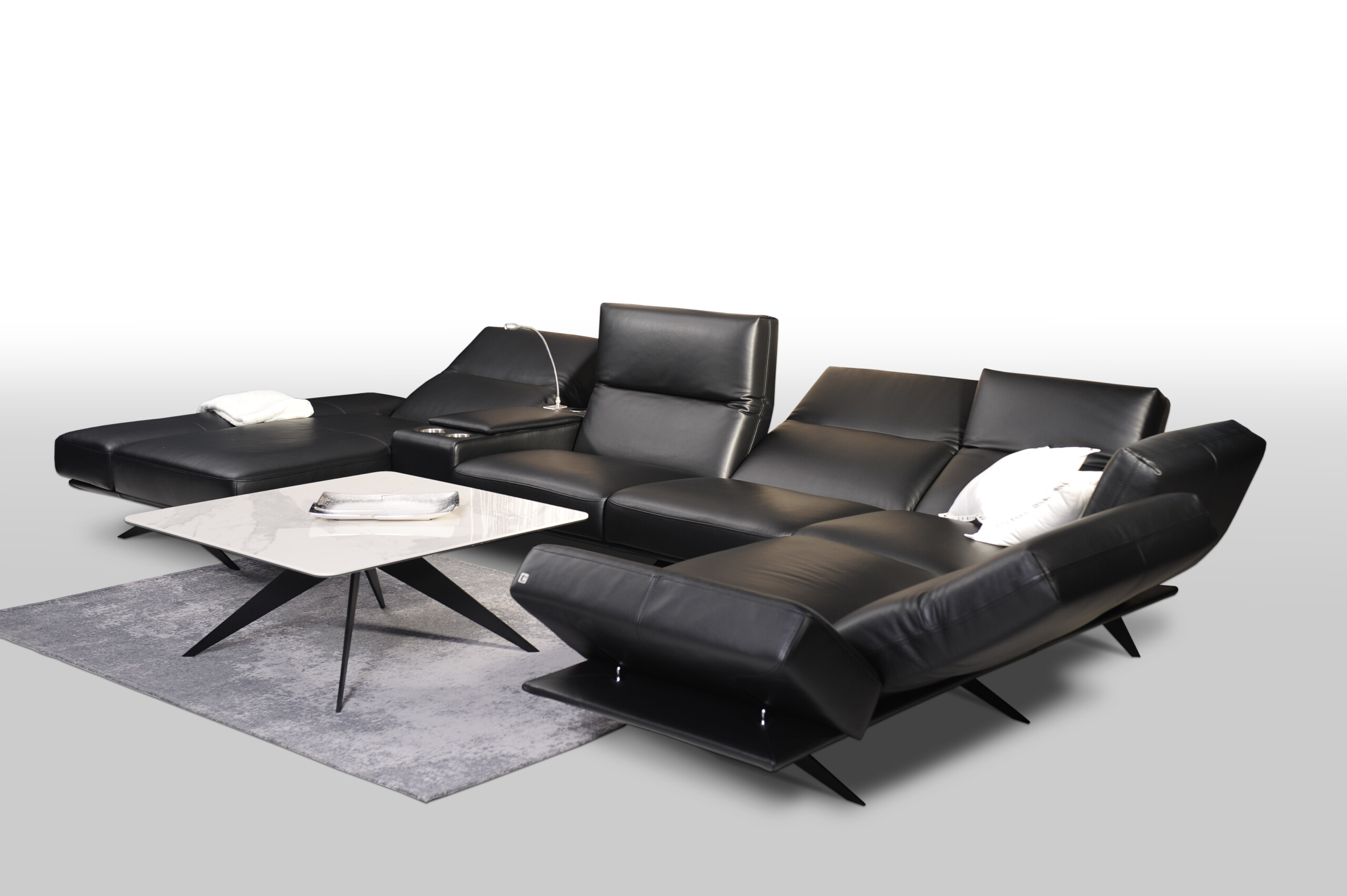 Model CLEO – duży narożnik z czarnej skóry naturalnej na wysokich płozach to wyjątkowy.