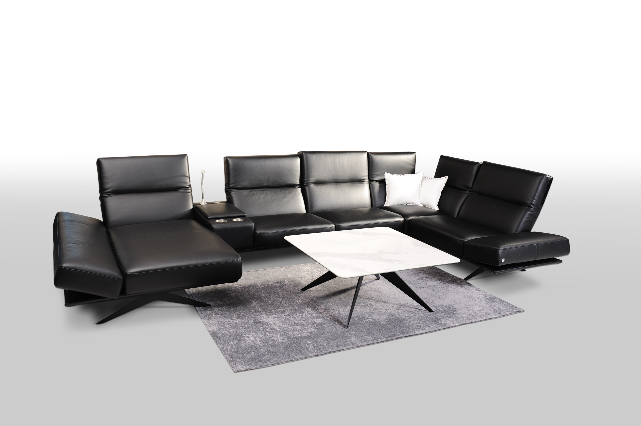 Nowoczesny i smukły wygląd narożnika uzyskujemy poprzez wąskie oparcia, które można ustawić w dowolnej pozycji.