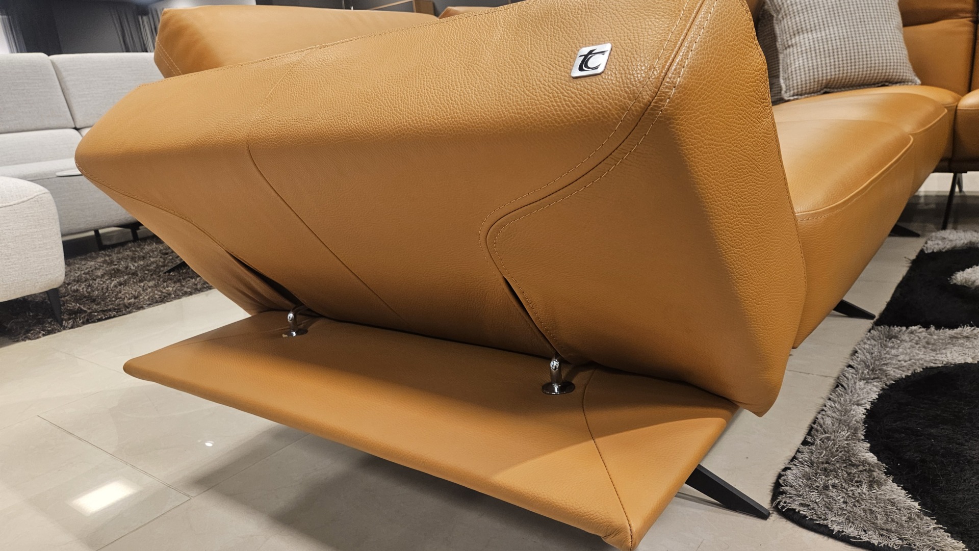 Narożnik wykonany jest z naturalnej skóry licowej, na wysokich czarnych płozach.