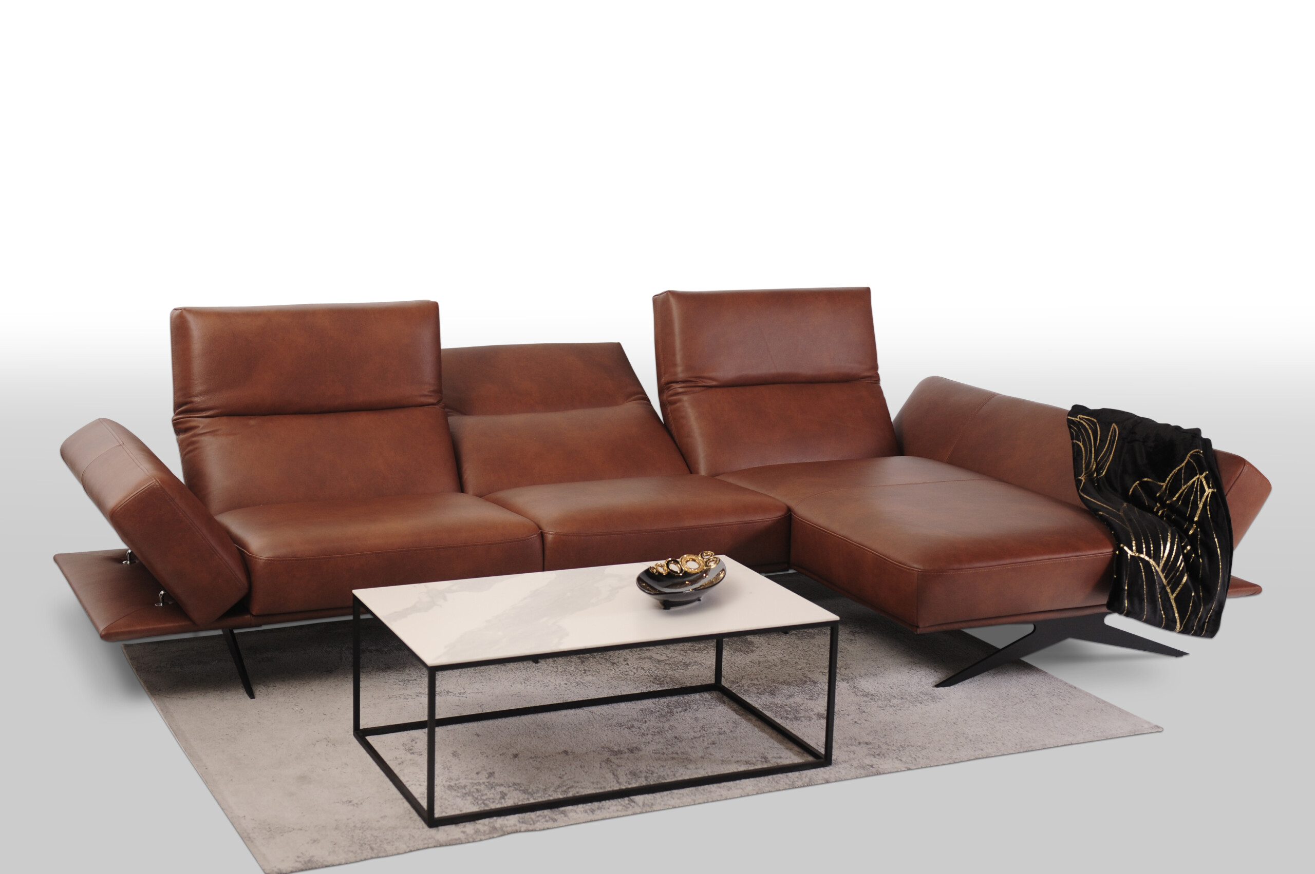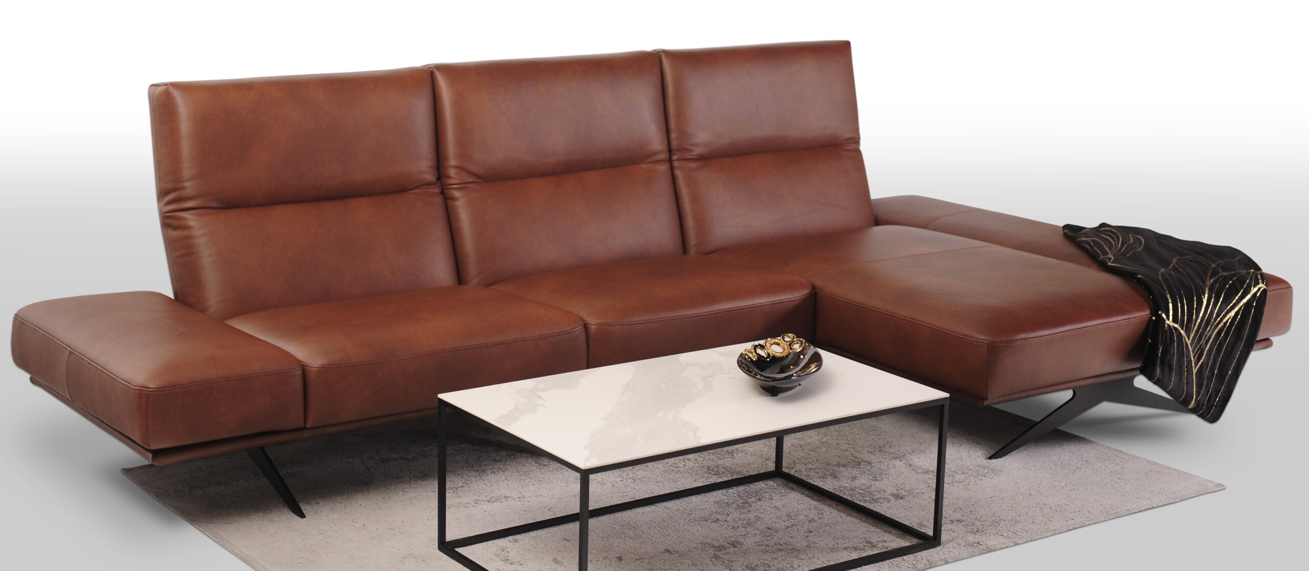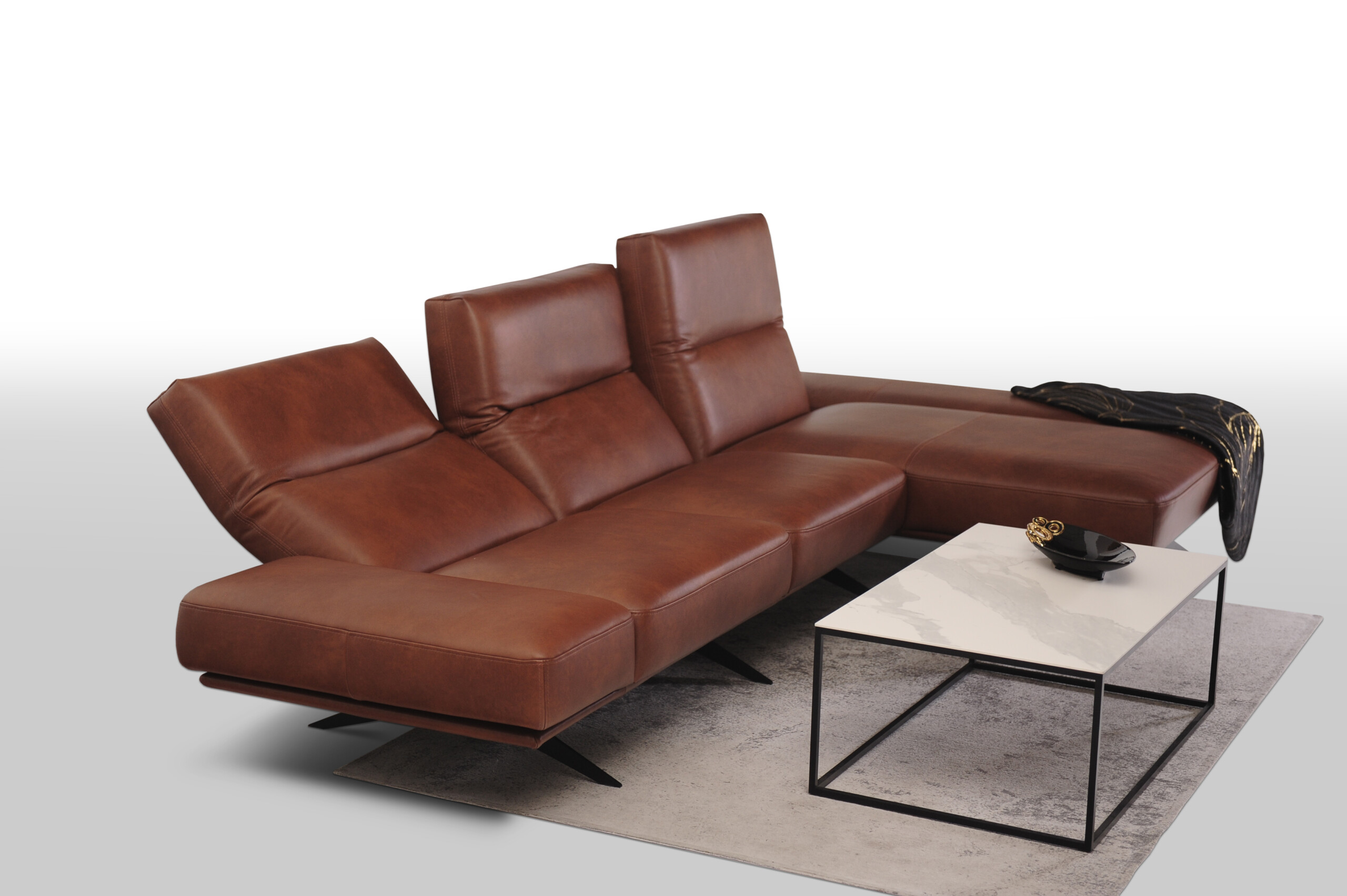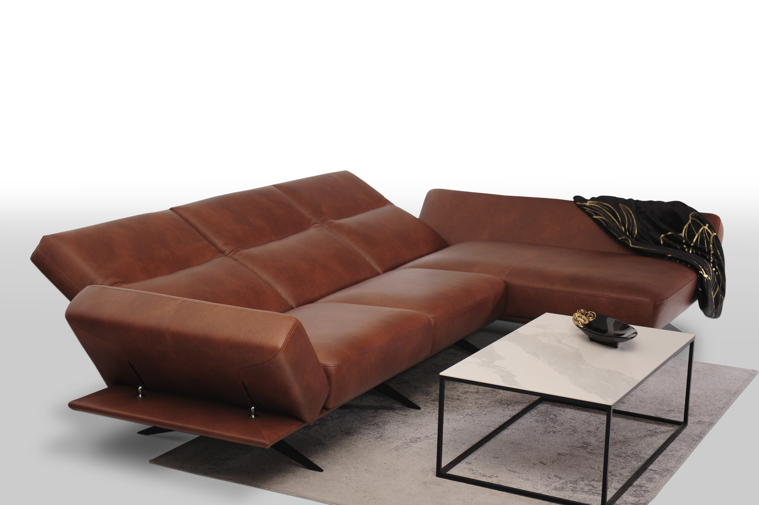 CLEO wykonany w miękkiej cieniowanej skórze naturalnej Granada to propozycja dla tych, którzy pragną nie tylko wygodnego i funkcjonalnego narożnika, ale także chcą wprowadzić do swojego wnętrza innowacyjny design i nowoczesny charakter.