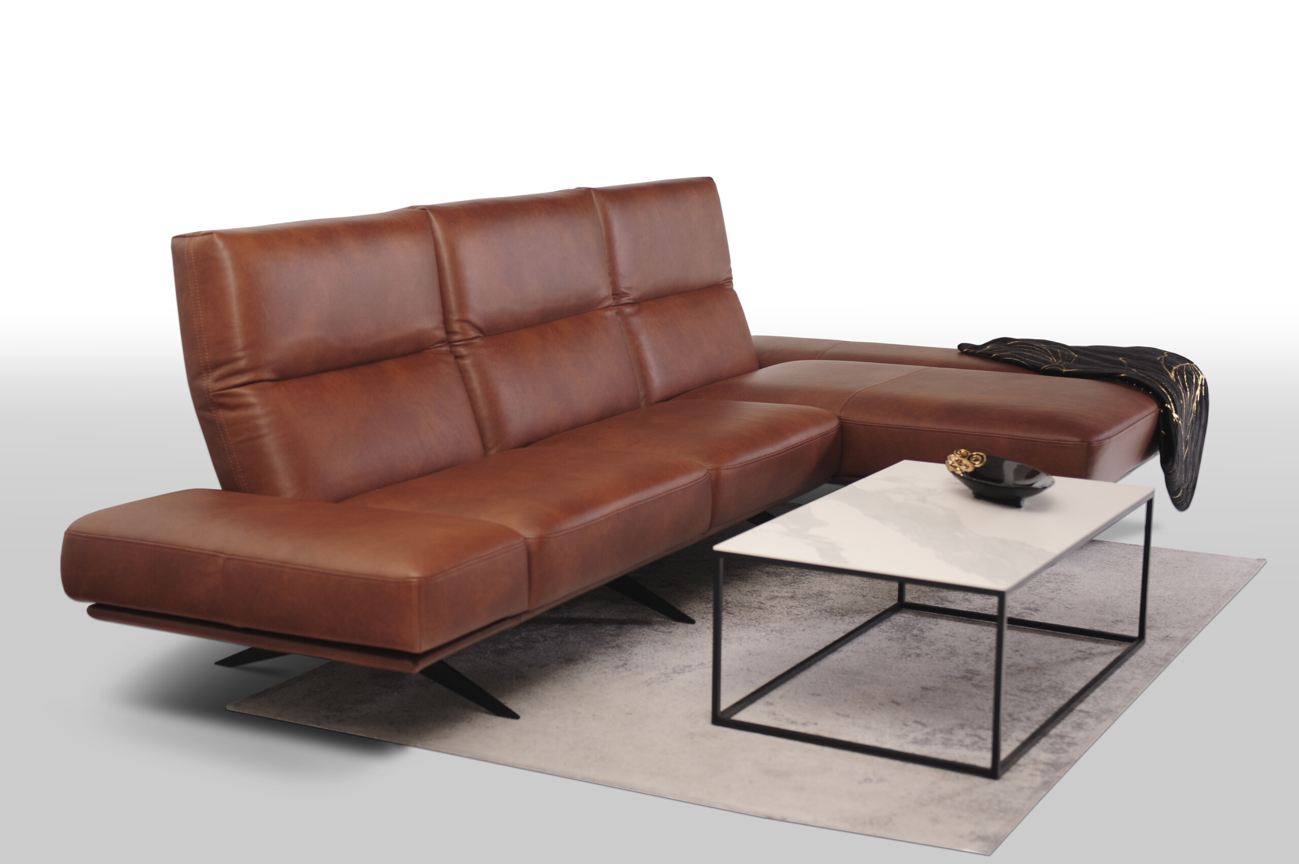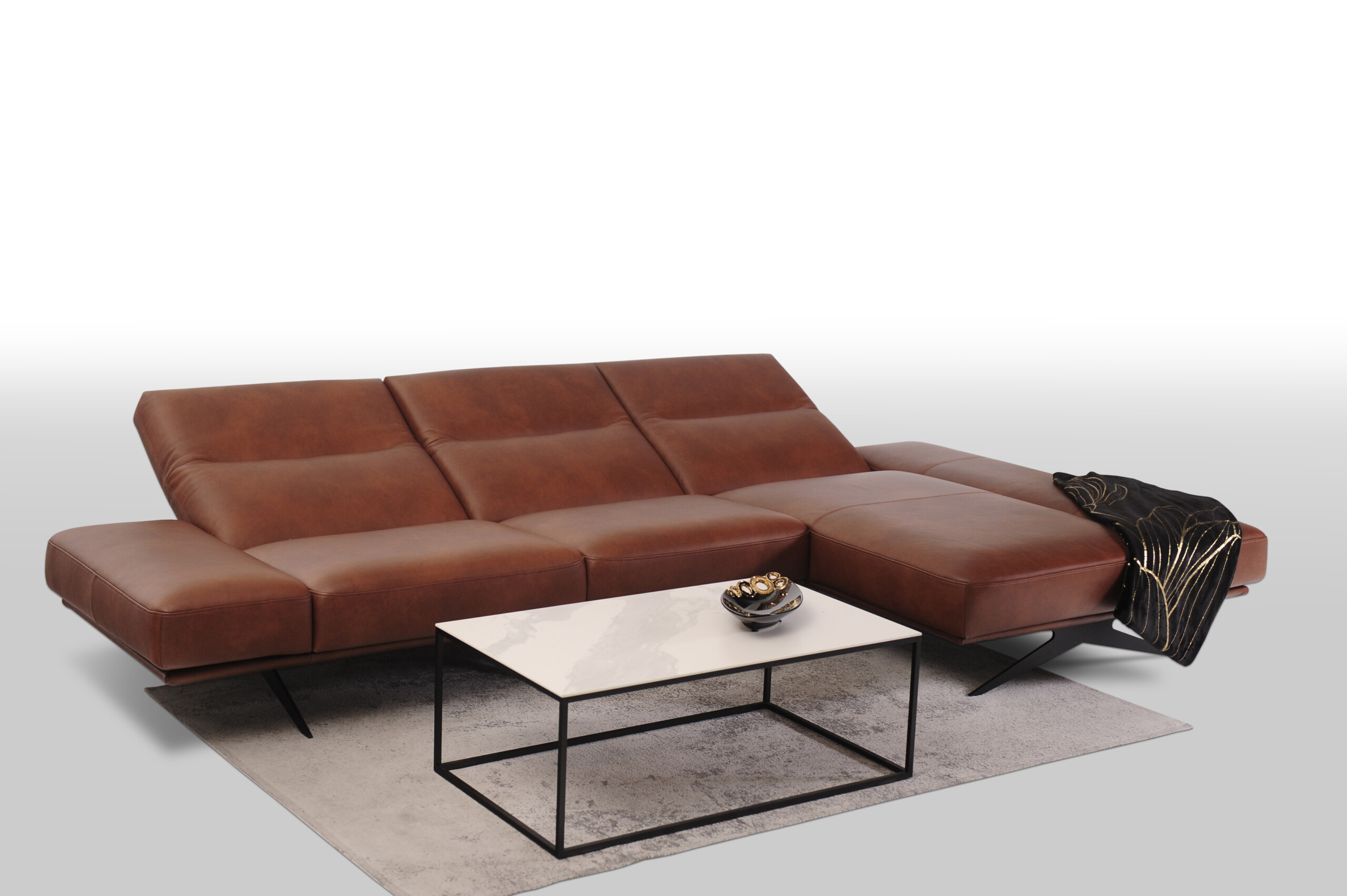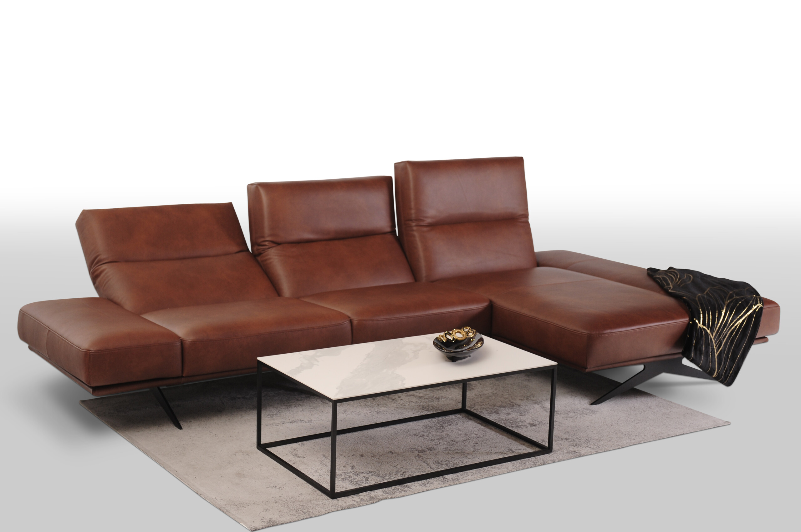 CLEO wykonany w miękkiej cieniowanej skórze naturalnej Granada to propozycja dla tych, którzy pragną nie tylko wygodnego i funkcjonalnego narożnika, ale także chcą wprowadzić do swojego wnętrza innowacyjny design i nowoczesny charakter.