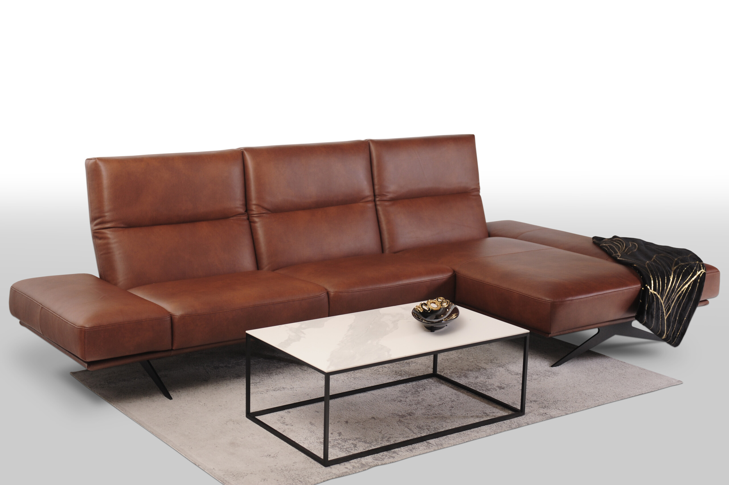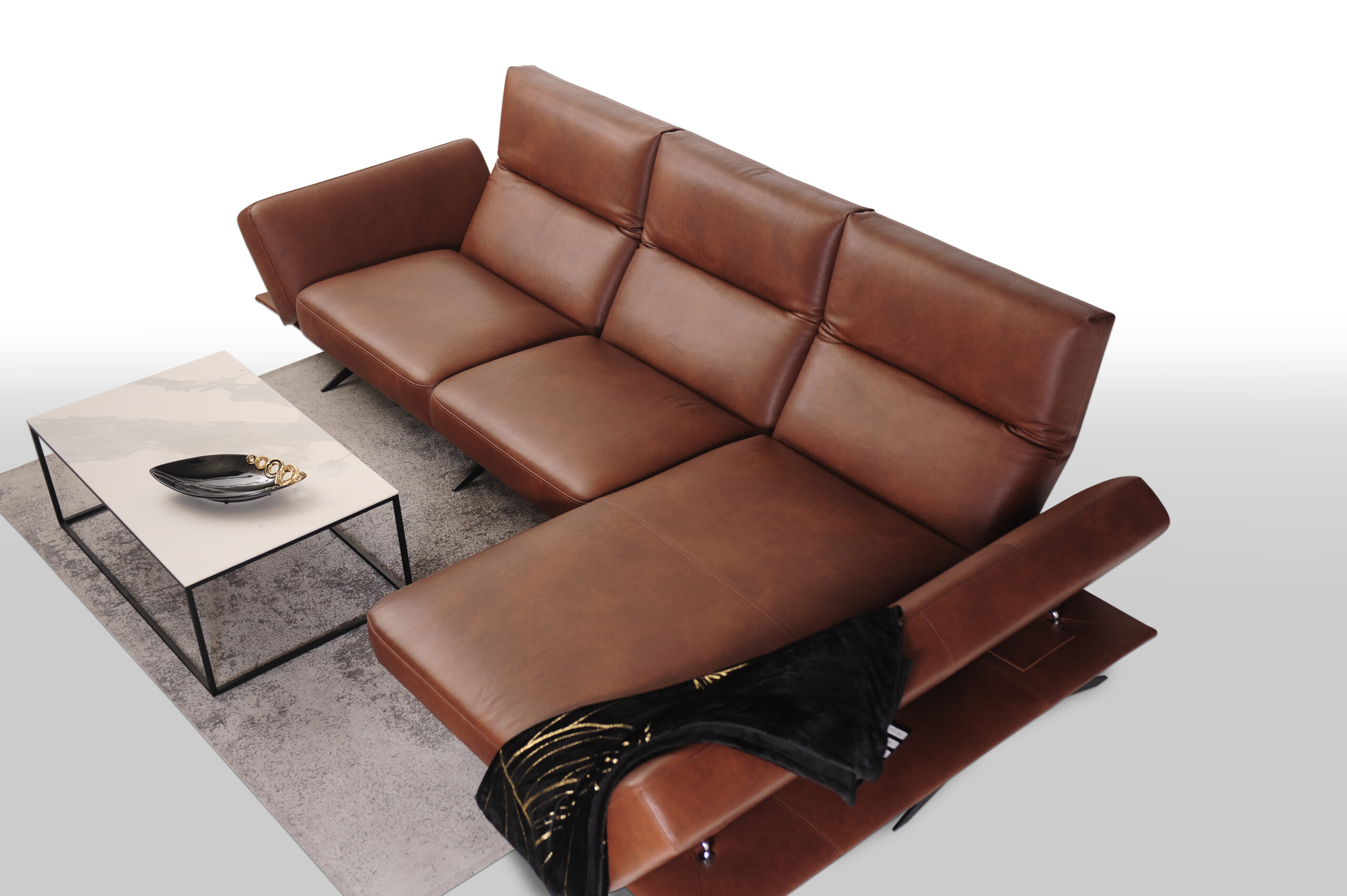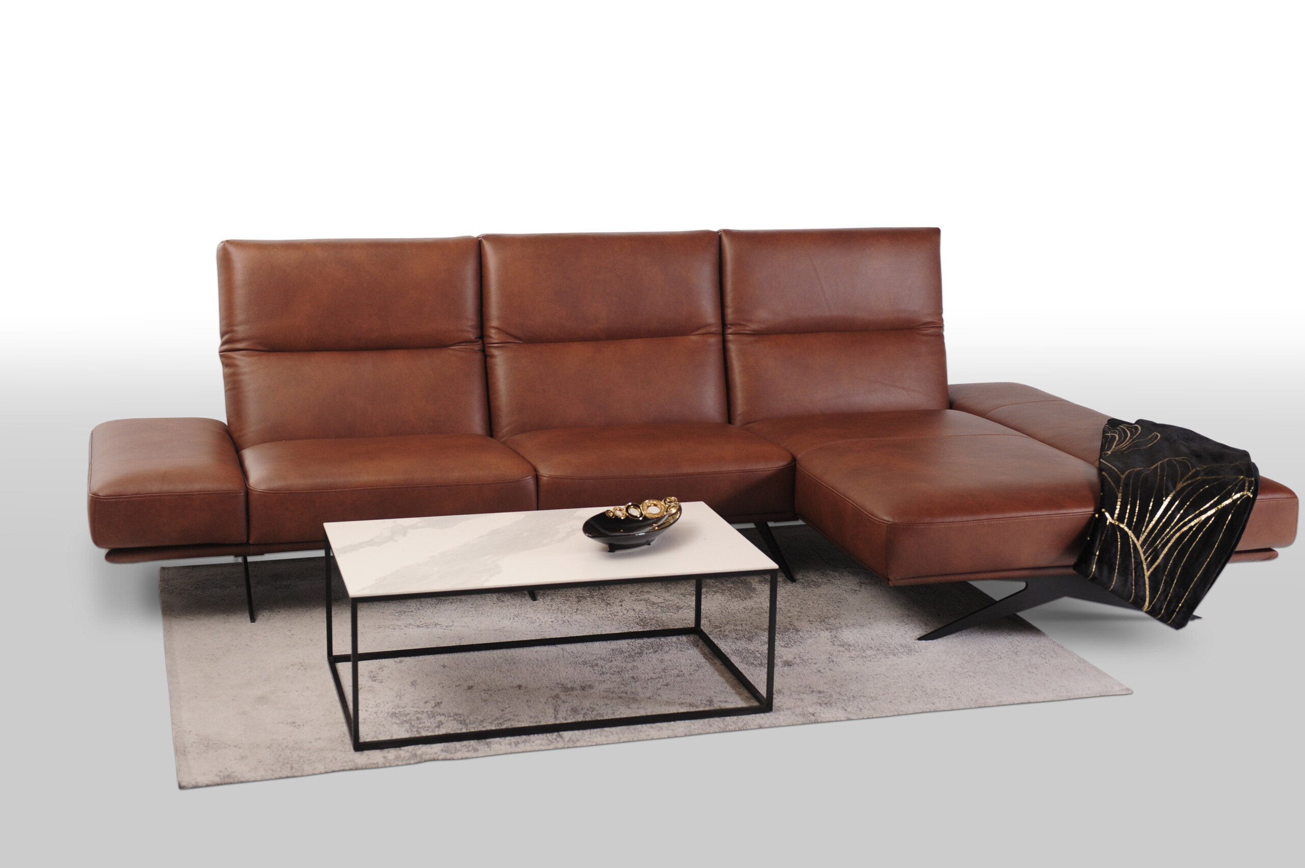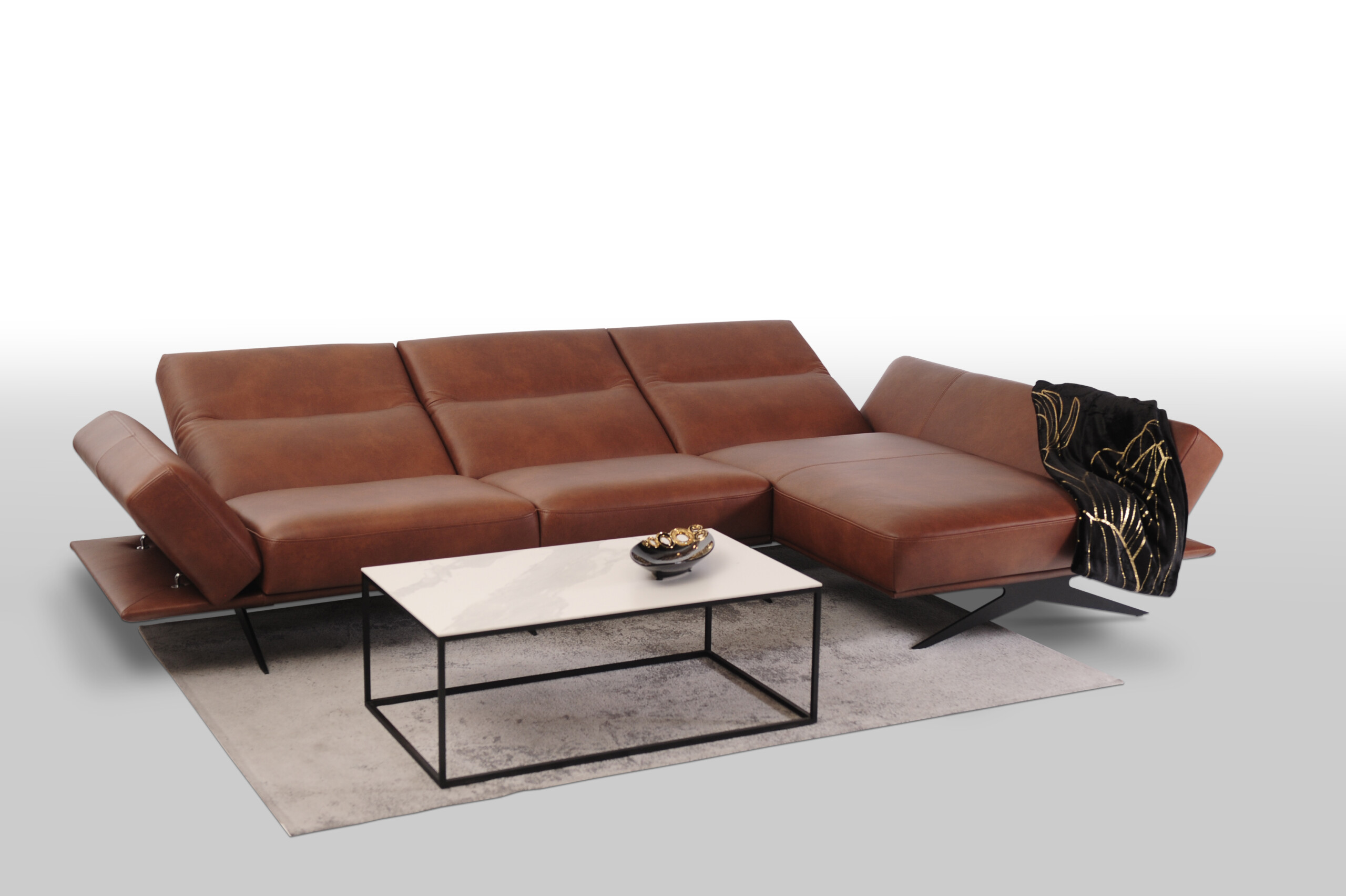 CLEO wykonany w miękkiej cieniowanej skórze naturalnej Granada to propozycja dla tych, którzy pragną nie tylko wygodnego i funkcjonalnego narożnika, ale także chcą wprowadzić do swojego wnętrza innowacyjny design i nowoczesny charakter.