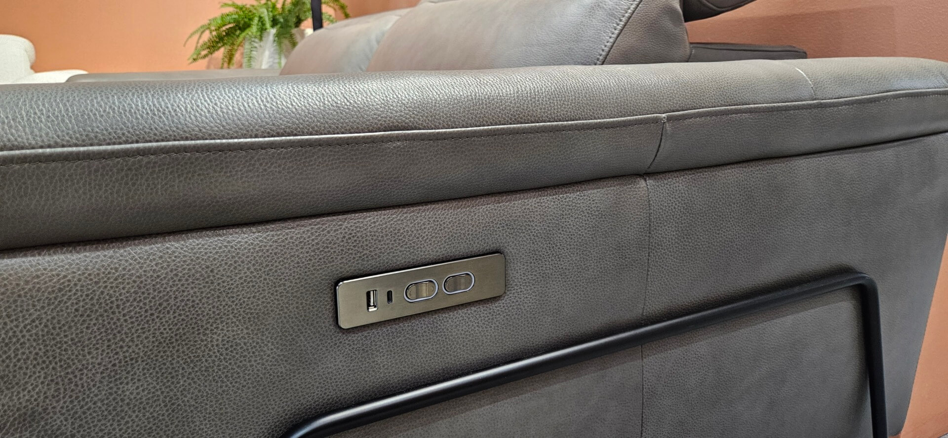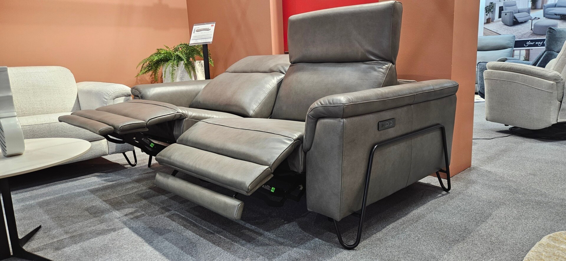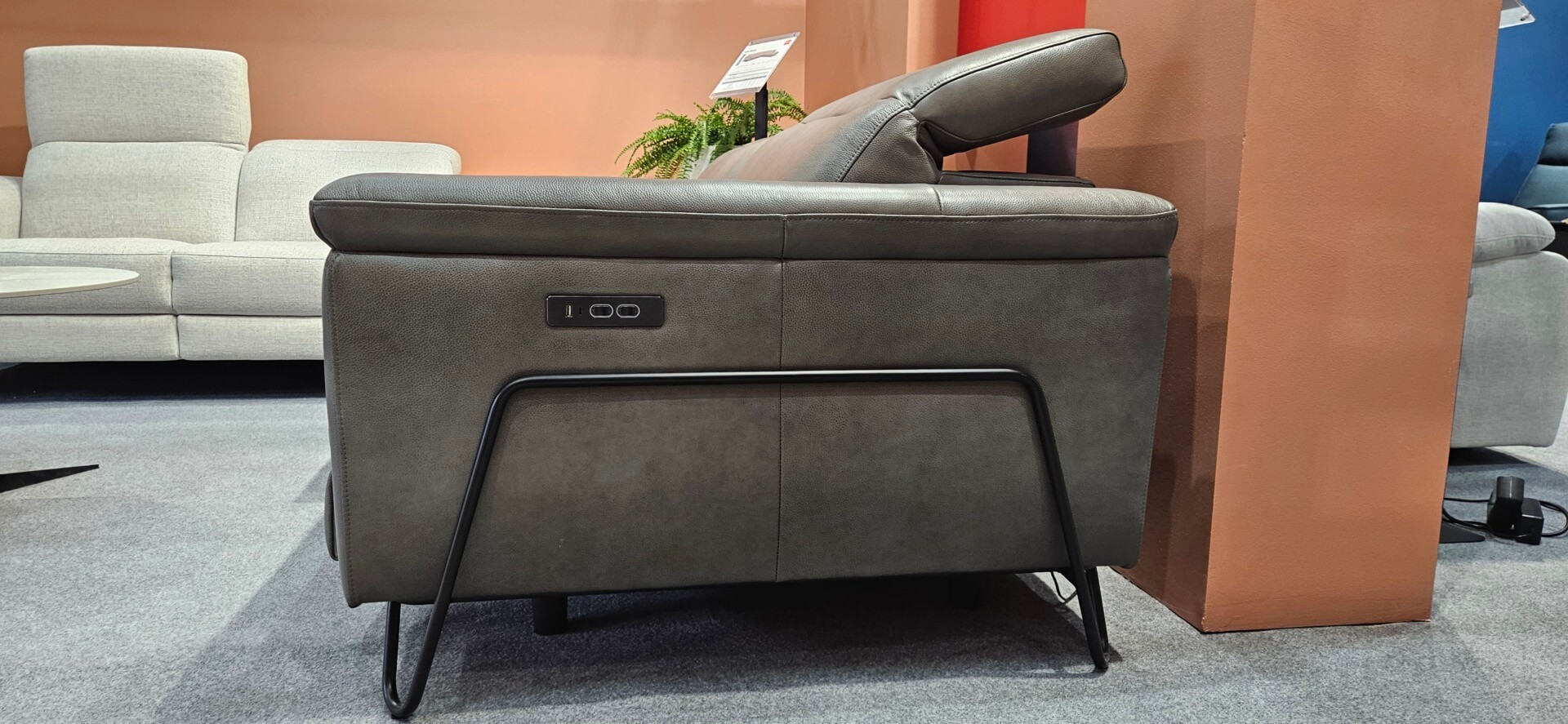 DM.6535 YORK GRAPHITE – Kanapa skórzana z relaksem elektrycznym na wysokich nóżkach