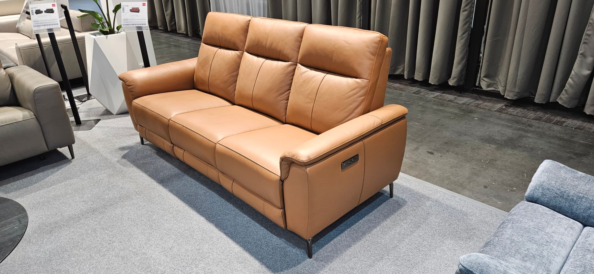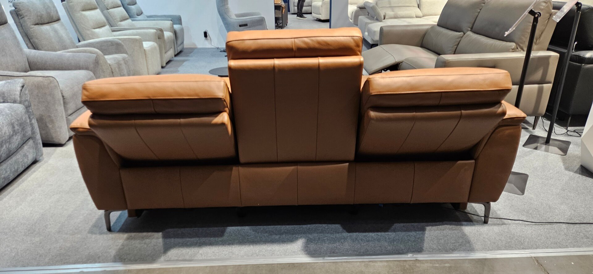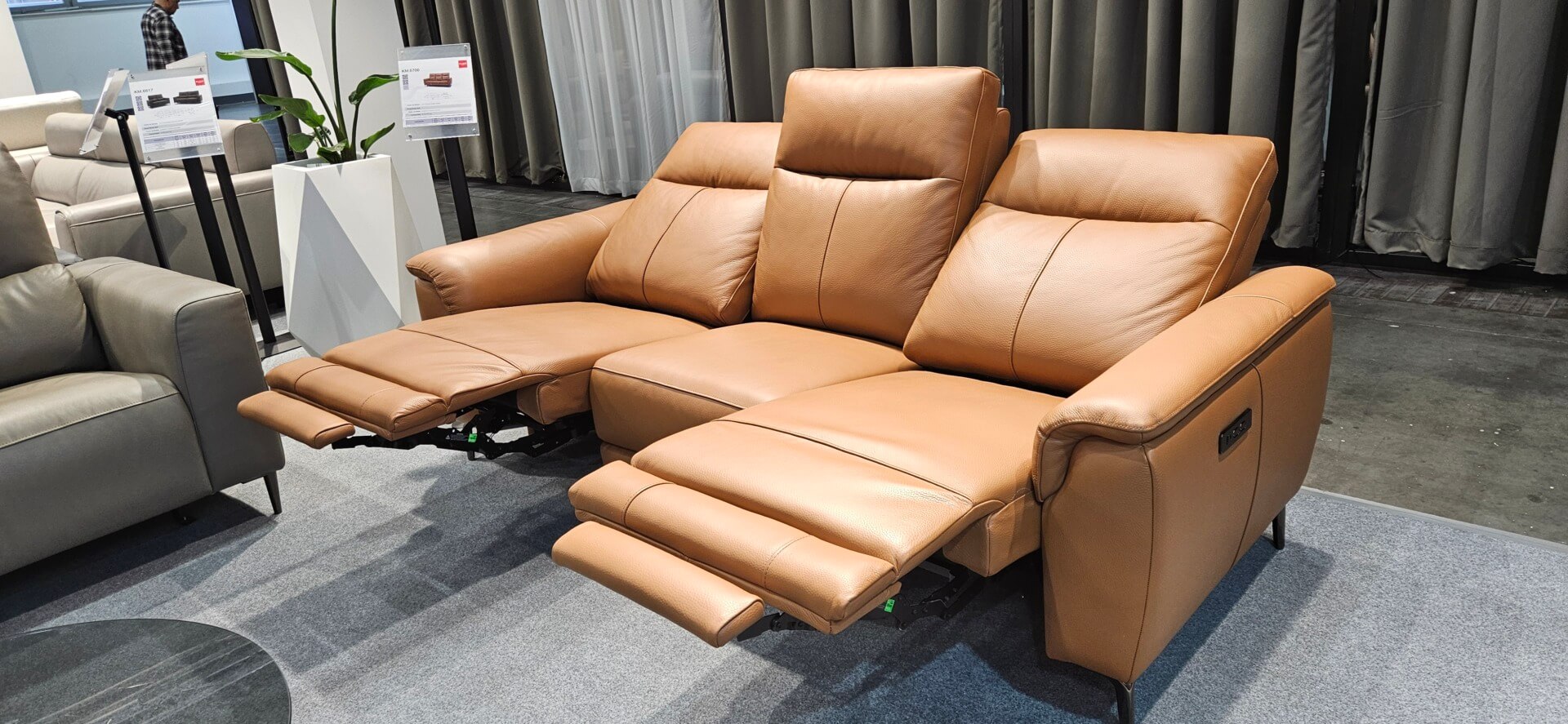 DM.6700 – Brązowa kanapa z naturalnej skóry z rozkładanymi elektrycznie siedziskami