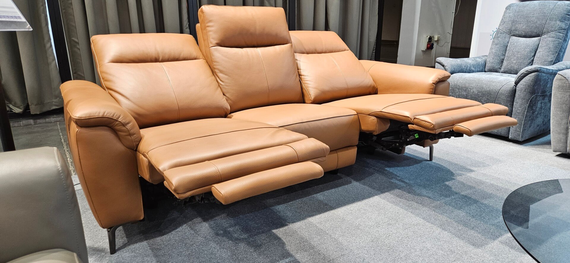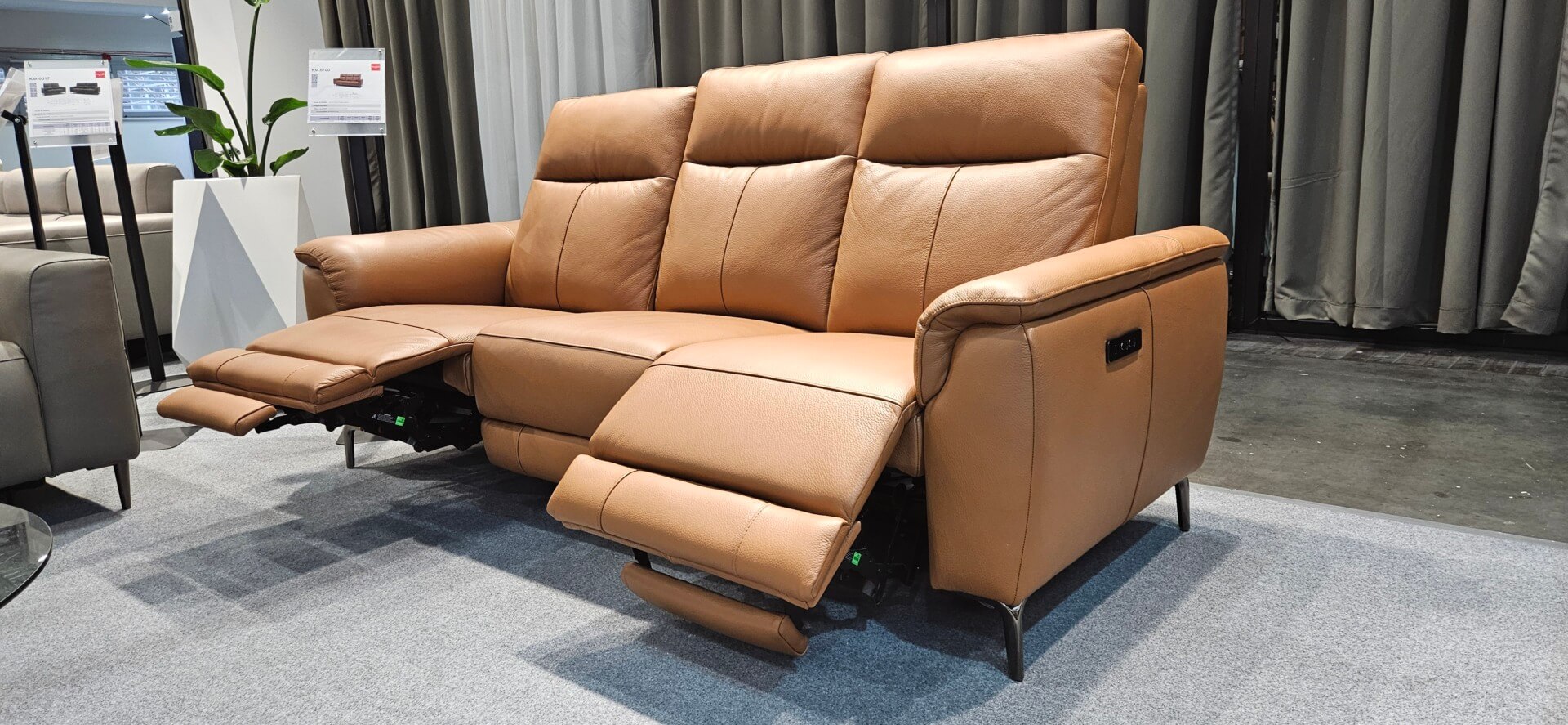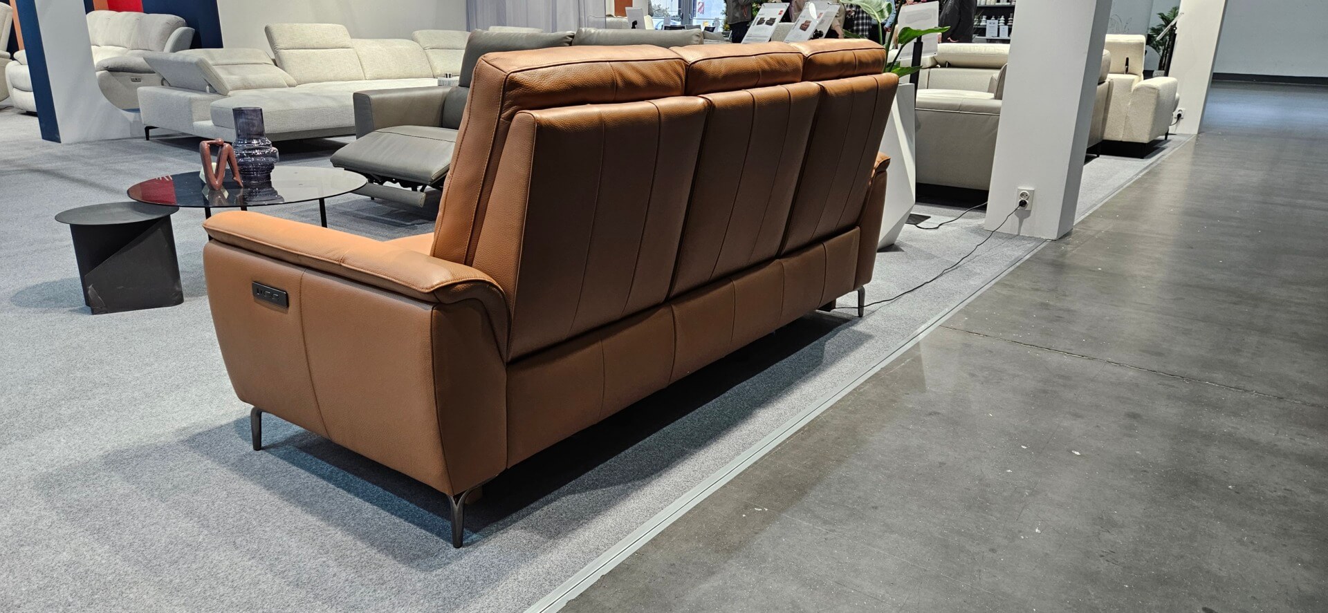 DM.6700 – Brązowa kanapa z naturalnej skóry z rozkładanymi elektrycznie siedziskami