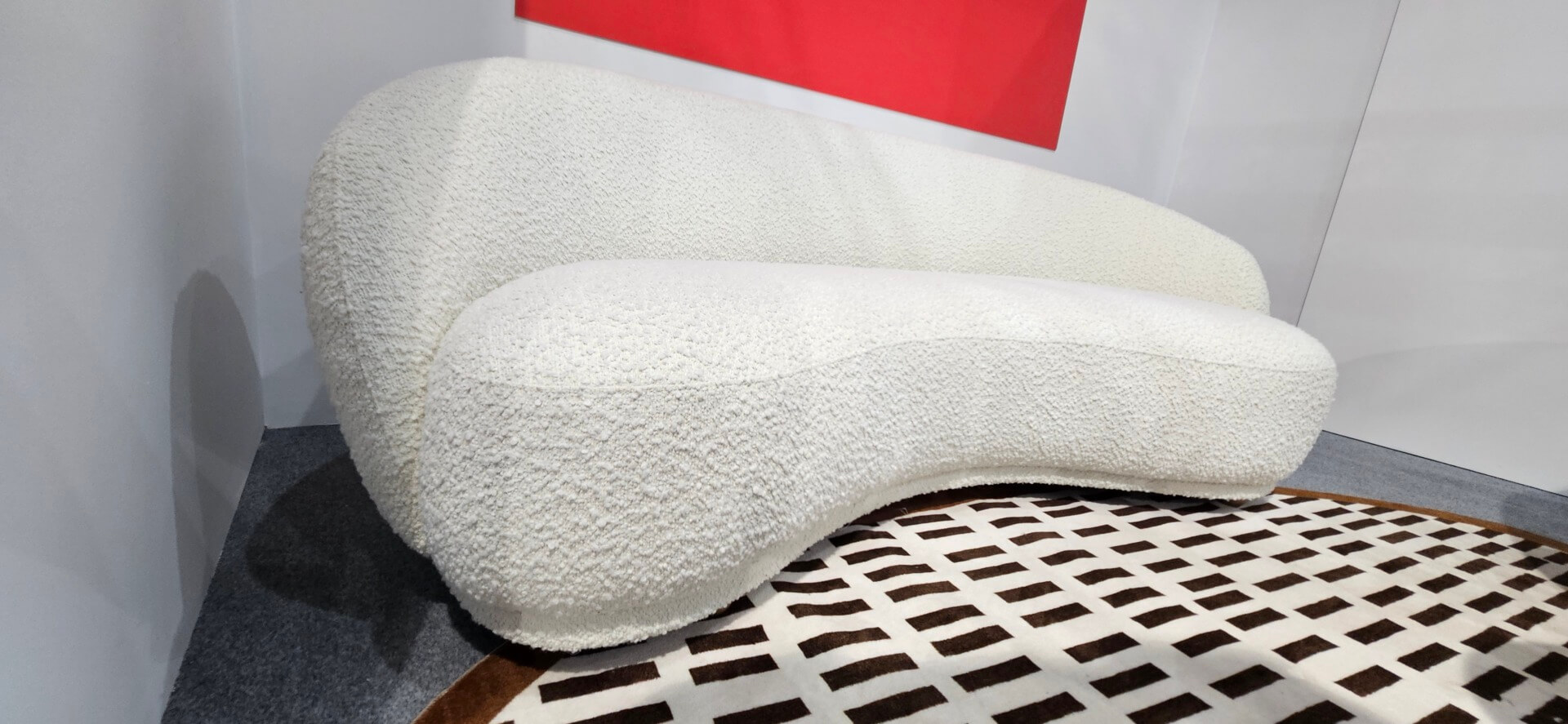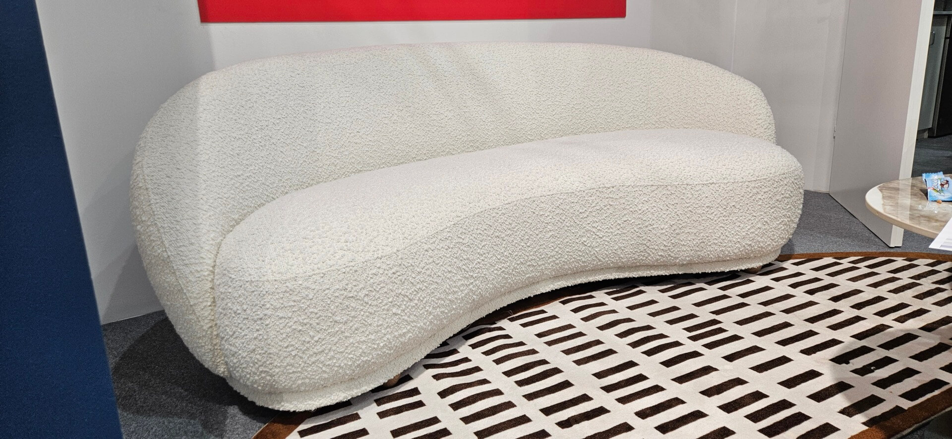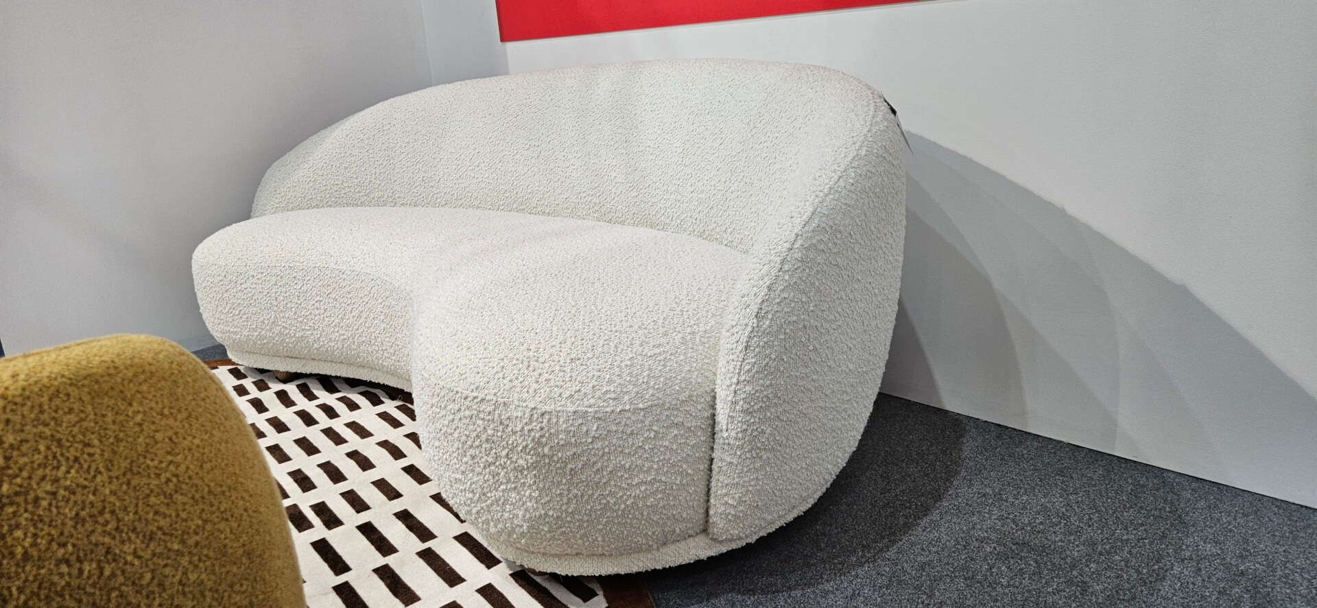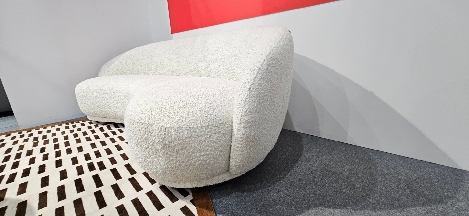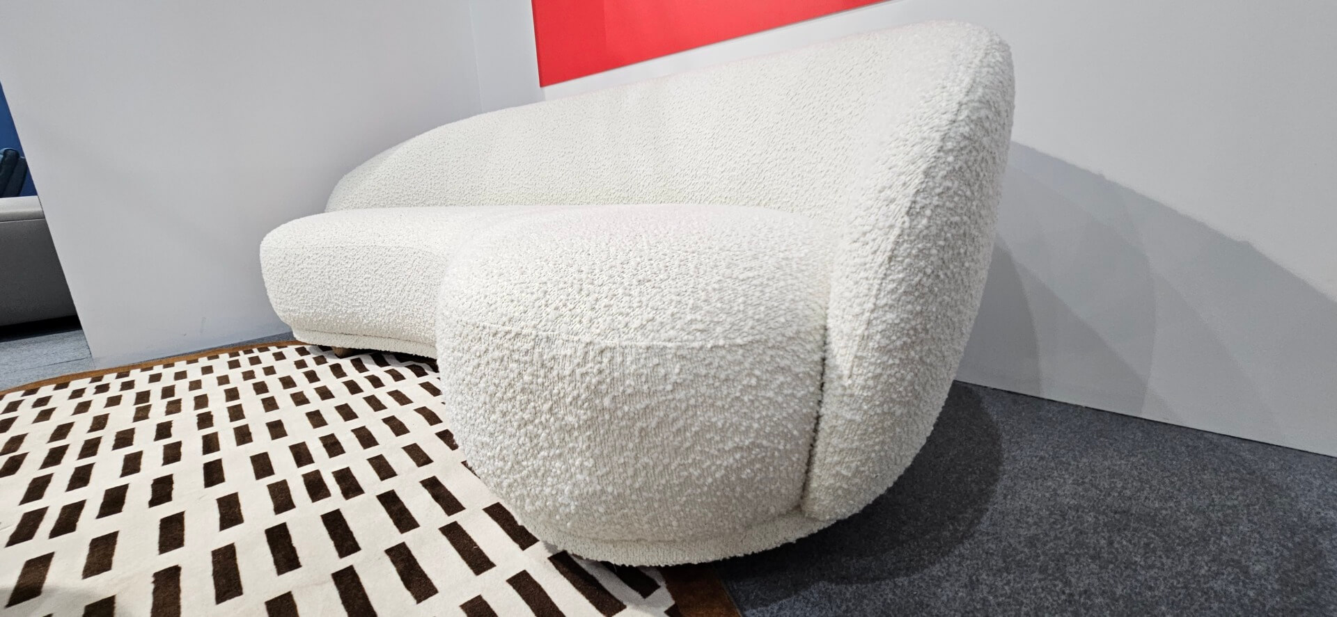 DM.8575 – Lekka obła kanapa z białej tkaniny Buclee, zaoblony kształt