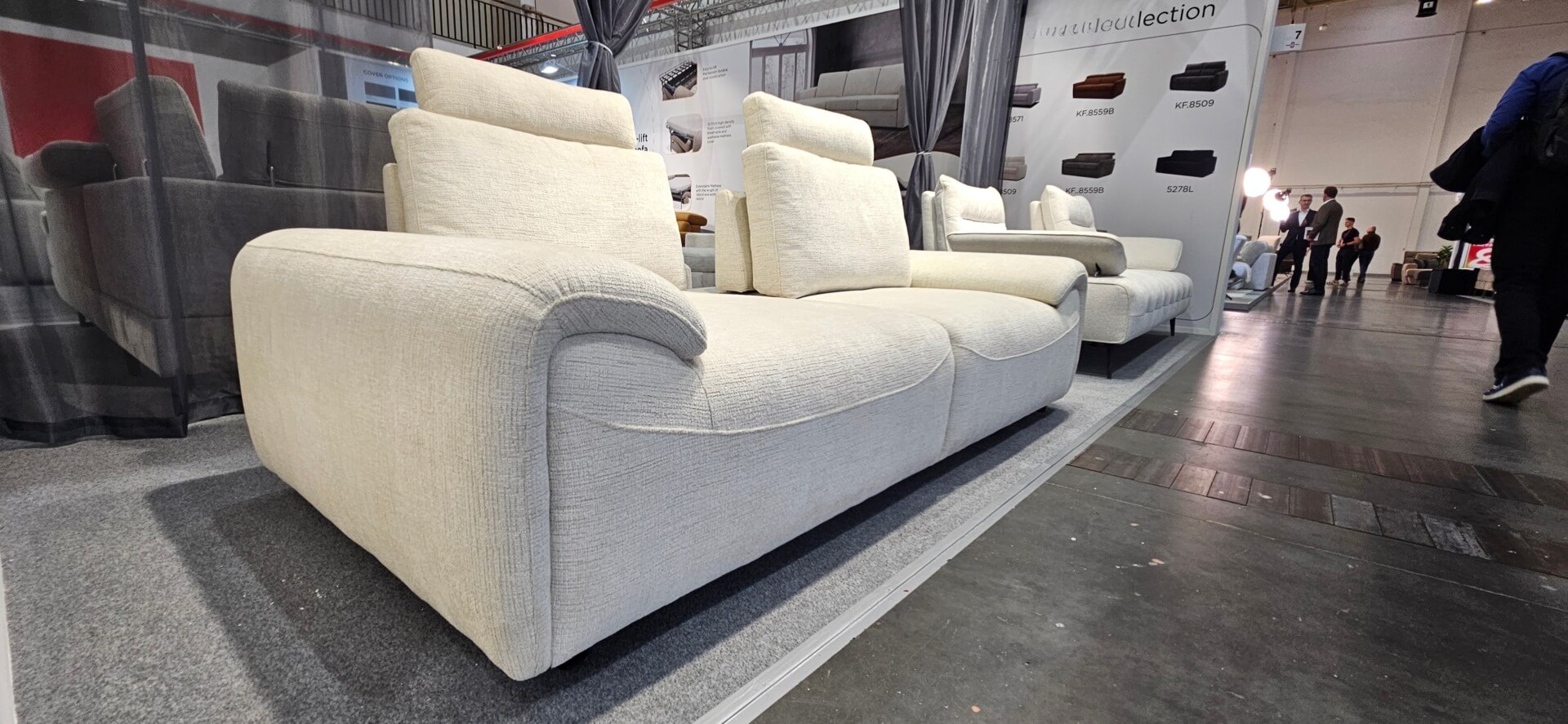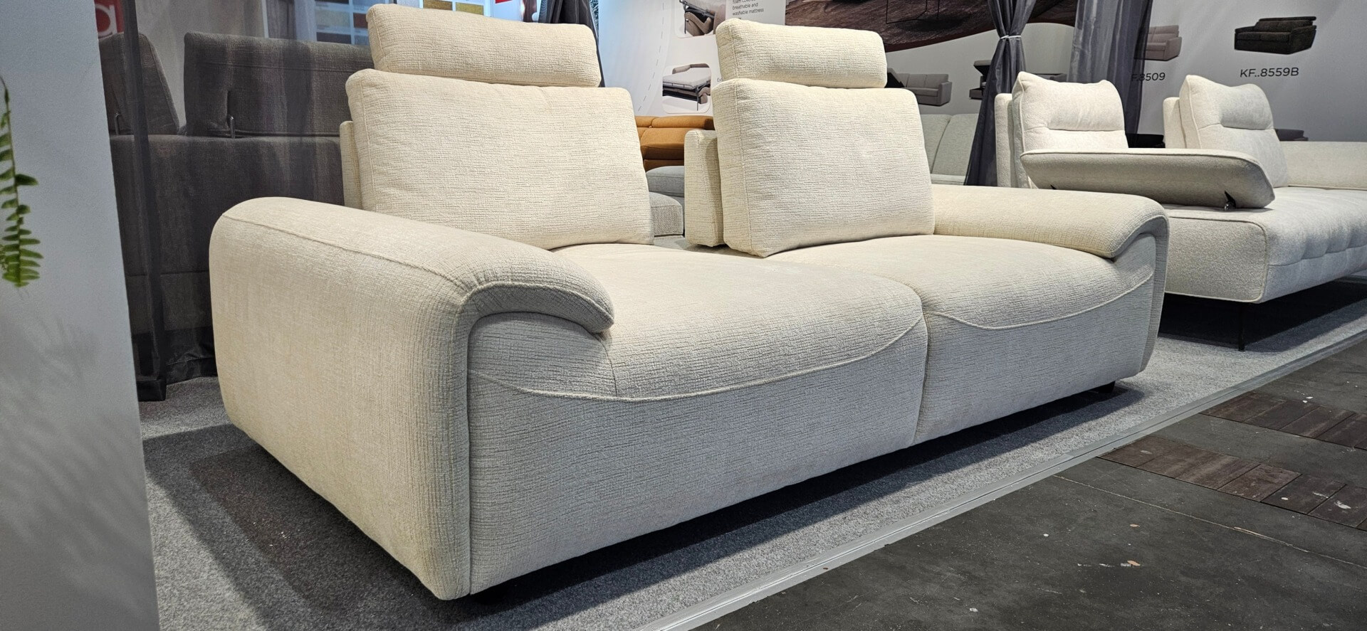 Jasnobezowa kanapa z wygodnymi oparciami pufiaste pelne siedziska z futerkowa tkanina 3
