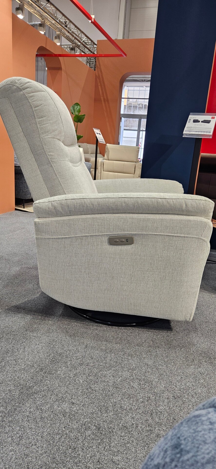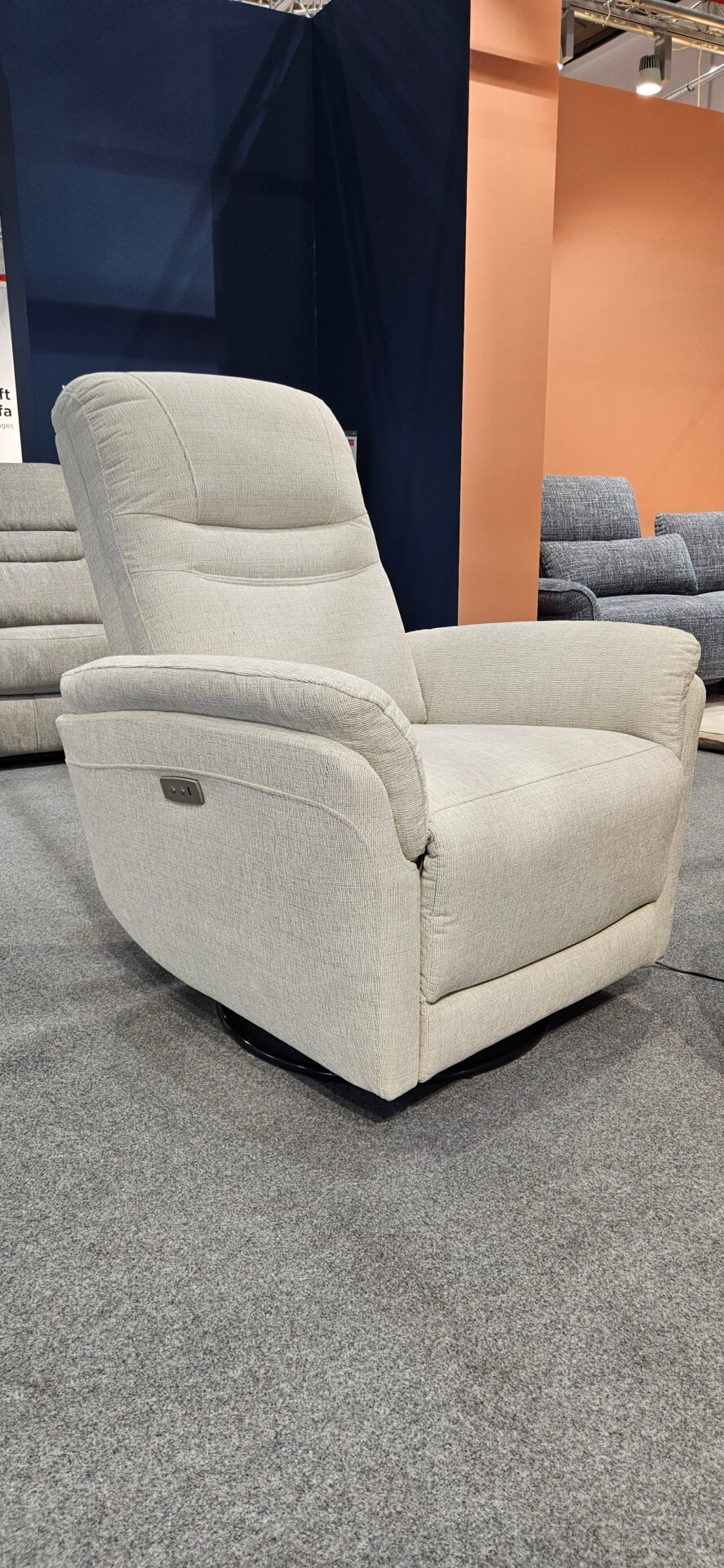 DM.A6036 – Wygodny fotel z rozkłądaniem elektrycznym z szarej zmywalnej tkaniny