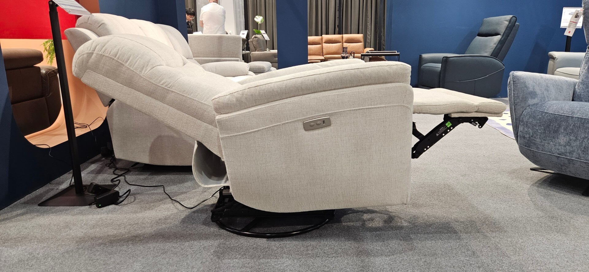 Wygodny fotel z rozkladaniem elektrycznym z szarej zmywalnej tkaniny 3