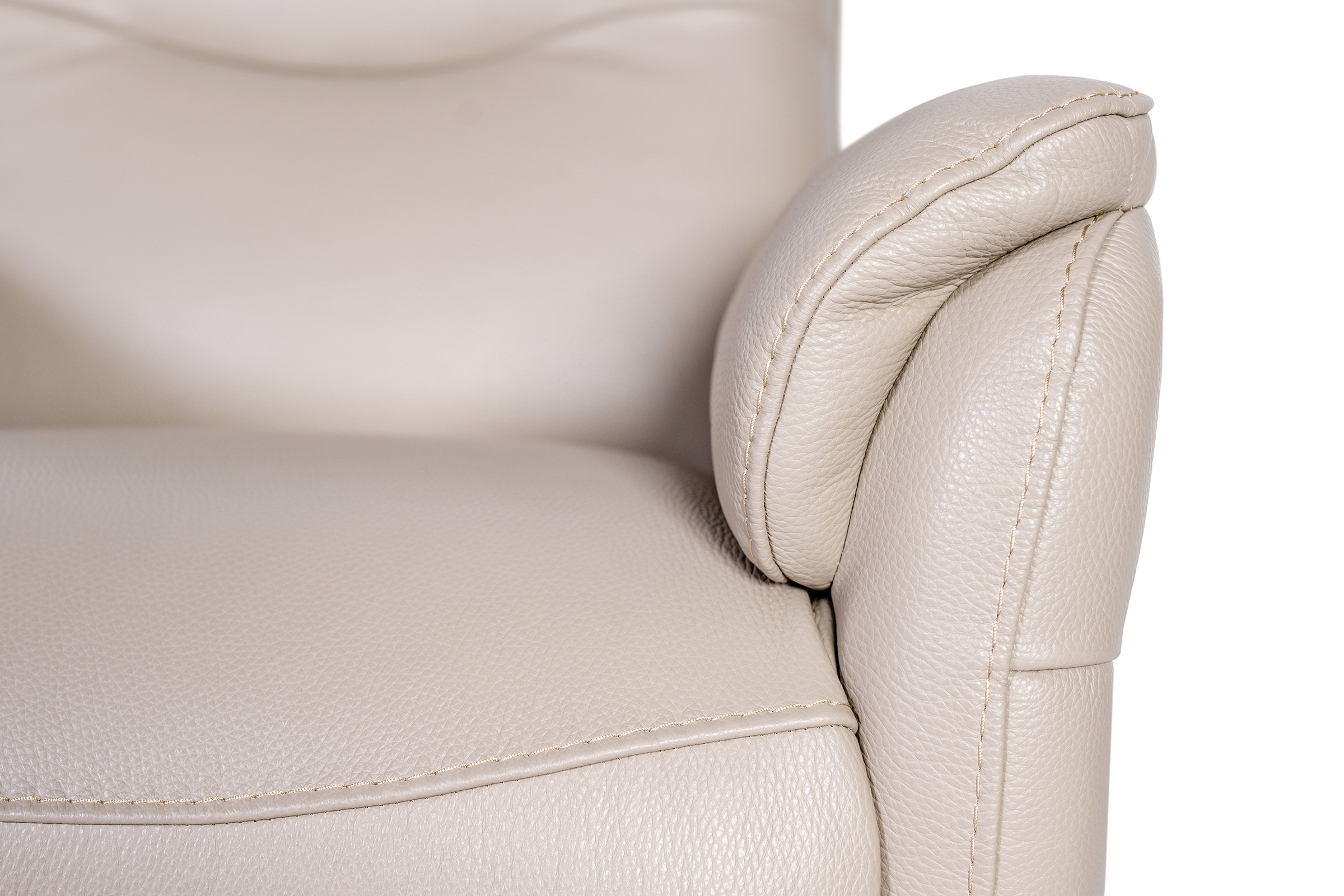 Fotel CD6011 to propozycja dla osób poszukujących nie tylko eleganckiego wyglądu, lecz także wygodnego i innowacyjnego mebla do relaksu. Wykonany z wysokiej jakości naturalnej skóry w delikatnym brązie lub beżu, z subtelnym przeszyciem na plecach, prezentuje niepowtarzalny styl.
