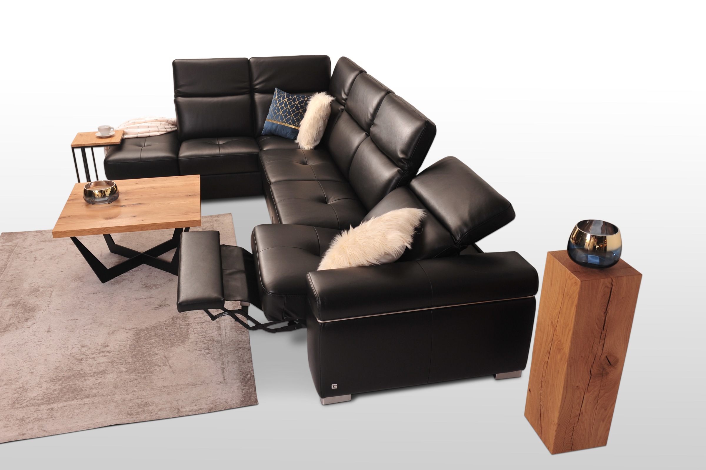 Podczas poszukiwania idealnego narożnika zwracasz uwagę na jego wygląd, komfort, a także fakt, jak będzie komponował się z resztą mebli. Genua – ekskluzywny narożnik z funkcją spania i relaksem elektrycznym to doskonały, ekskluzywny mebel dla najbardziej wymagających klientów. Stanowi połączenie najlepszej jakości i najwyższego kunsztu wykonania. Pozwala każdemu dopasować oparcie do swoich potrzeb, zachwycając dodatkową funkcją relaksu. Model może przyjąć różne wymiary, dzięki czemu łatwo go dopasować do aktualnego układu pokoju. Zniewalające obicie dostępne w wielu wariantach kolorystycznych, zarówno ze skóry naturalnej, jak i materiału, sprawia, że wnętrze salonu będzie spójne i estetyczne. Istnieje możliwość wkomponowania barku, który pozwoli cieszyć się zawsze chłodnymi napojami i dodatkowym miejscem do trzymania szklanek czy kubków. Do modelu Genua można dopasować również bliźniacze meble z kolekcji, dostępne w katalogu naszego sklepu.