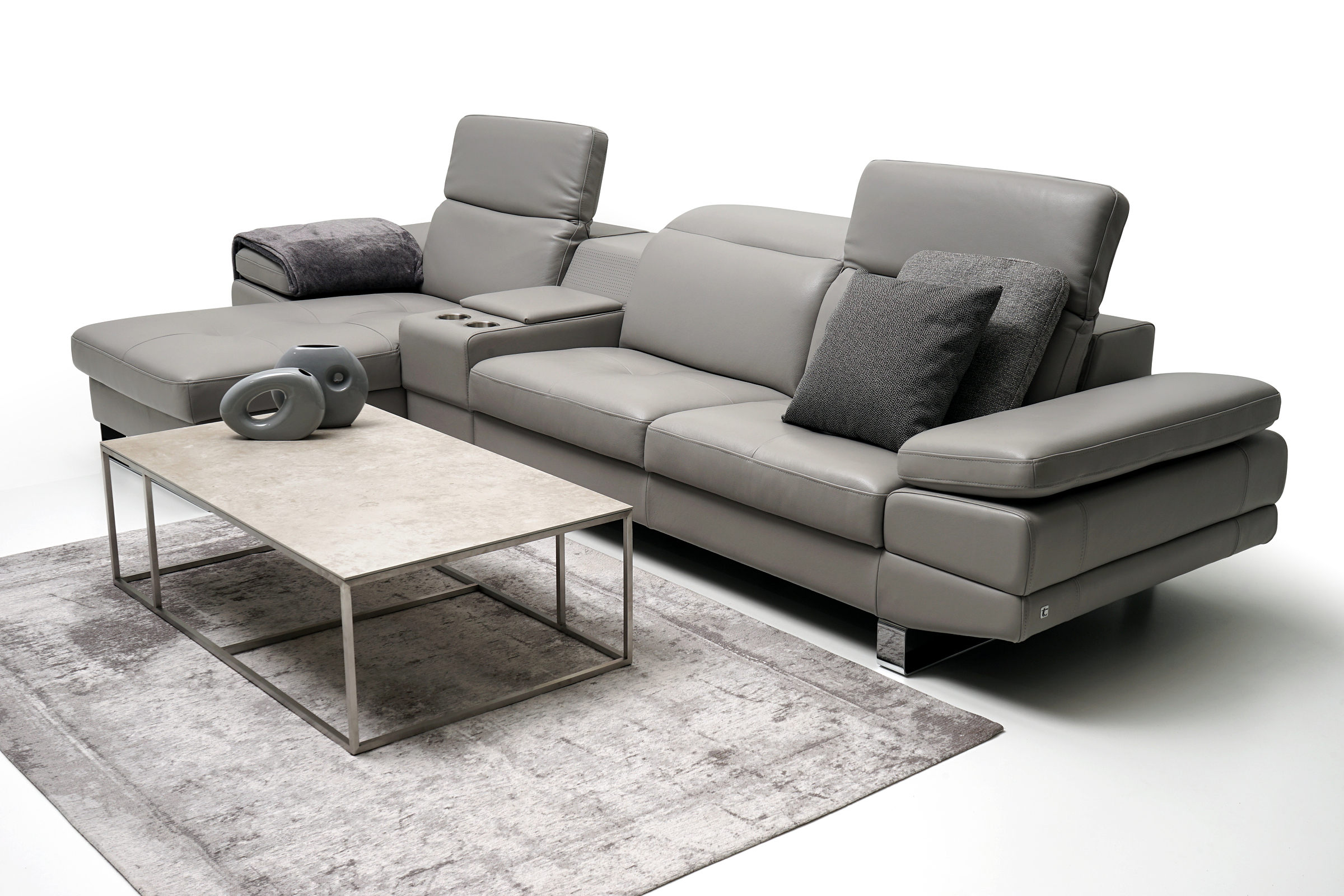 Goja- narożnik z podnoszonymi zagłówkami dzięki czemu każdy znajdzie wygodną pozycję, niezależnie od wzrostu. Wykonany jest z tkaniny połączonej ze skórą naturalną. Jego prosty, geometryczny kształt wpasuje się w każdą przestrzeń, a metalowe, czarne nogi dodają mu niezwykłej klasy i designu. Jego zaletą jest podnoszony boczek, który umożliwi relax w pozycji leżącej i posłuży jako zagłówek.