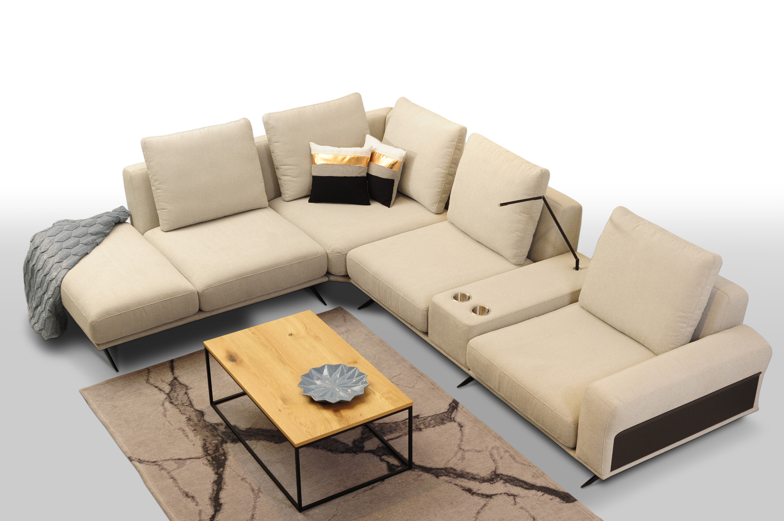 Dostępny jest w formie sofy 3-os, 2-os, fotela, puf oraz wspomnianego narożnika.