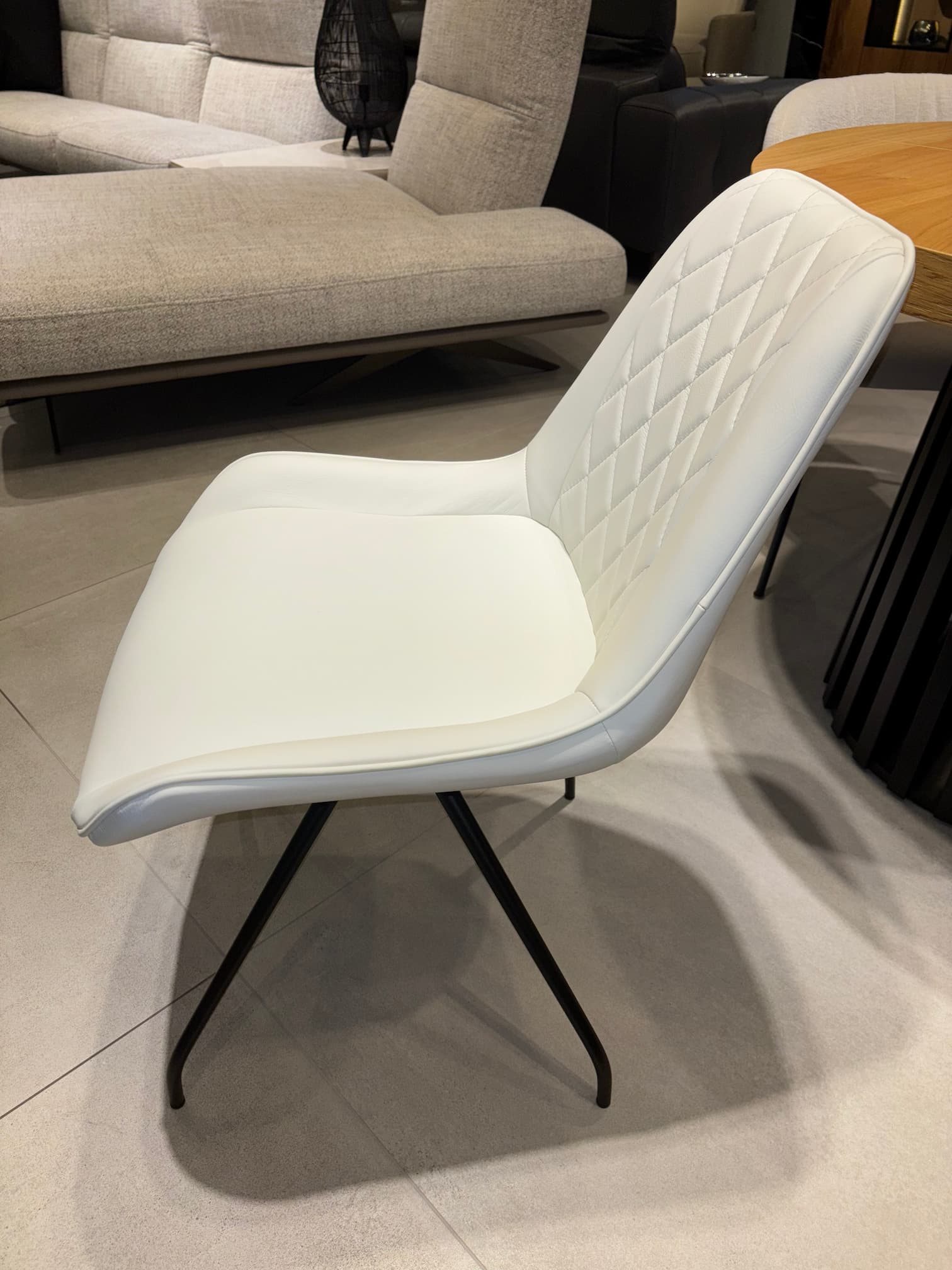 Zestaw 6 szt krzeseł Caroline 01-312 w skórze białej Massif White, noga metalowa czarna obrotowa 360.