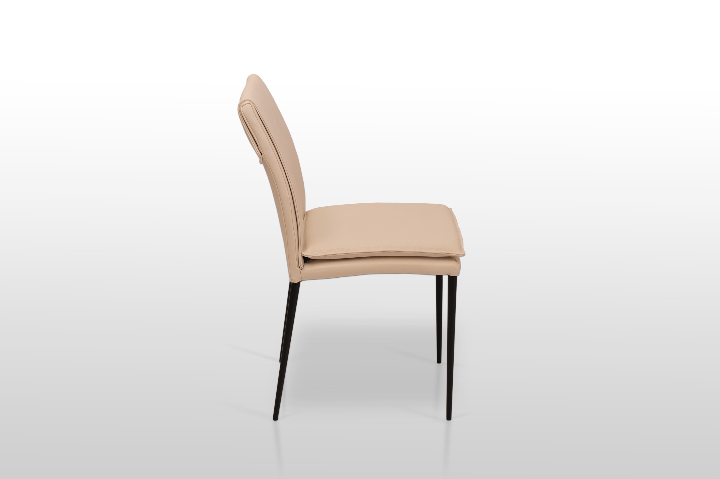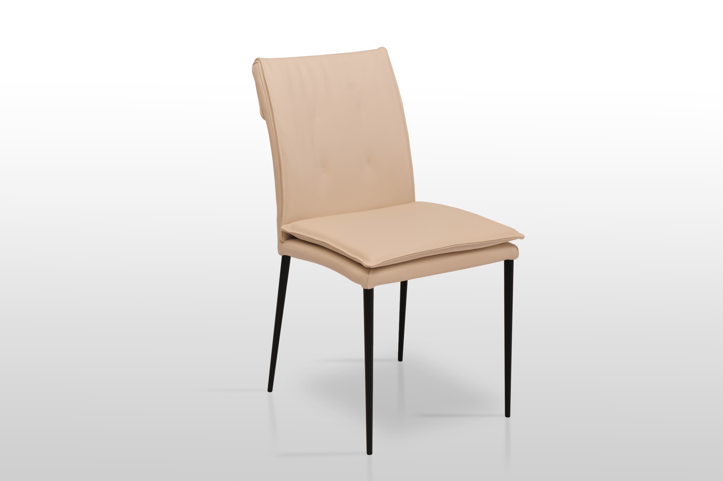 Nowoczesne krzesło wykonane w 100% ze skóry naturalnej, na metalowych, butelkowych nogach malowanych proszkowo na czarny kolor. Swój niecodzienny wygląd zawdzięczają “poduszce” na siedzisku dzięki czemu są niezwykle wygodne a zarazem pięknie się prezentują.
