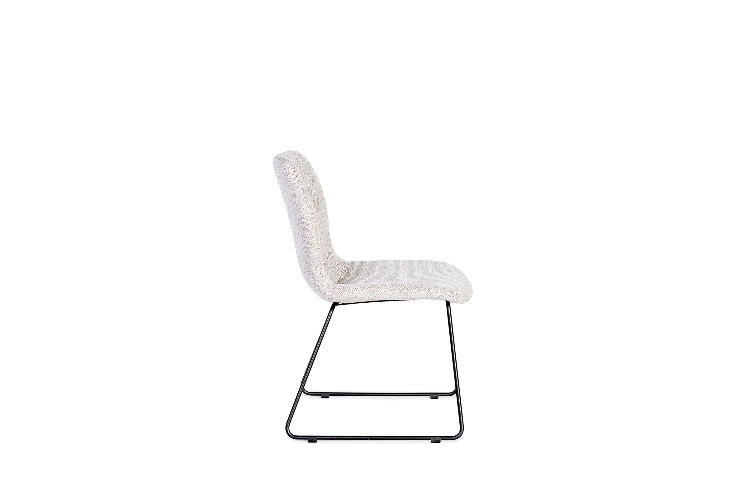 – Konstrukcja: Metalowe czarne płozy, ergonomiczne siedzisko wyprofilowane w formie kubełka.