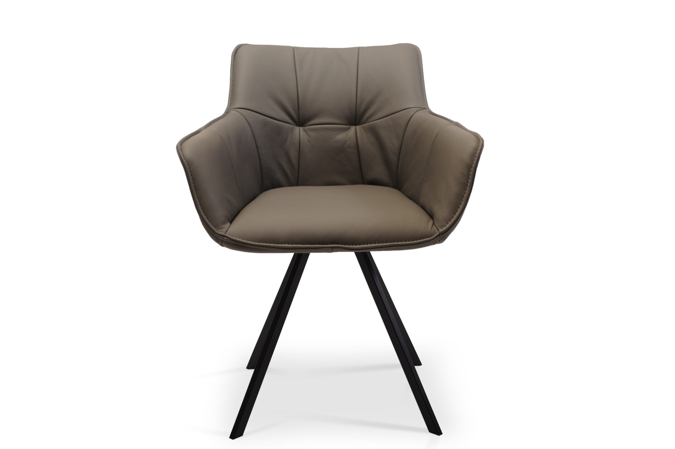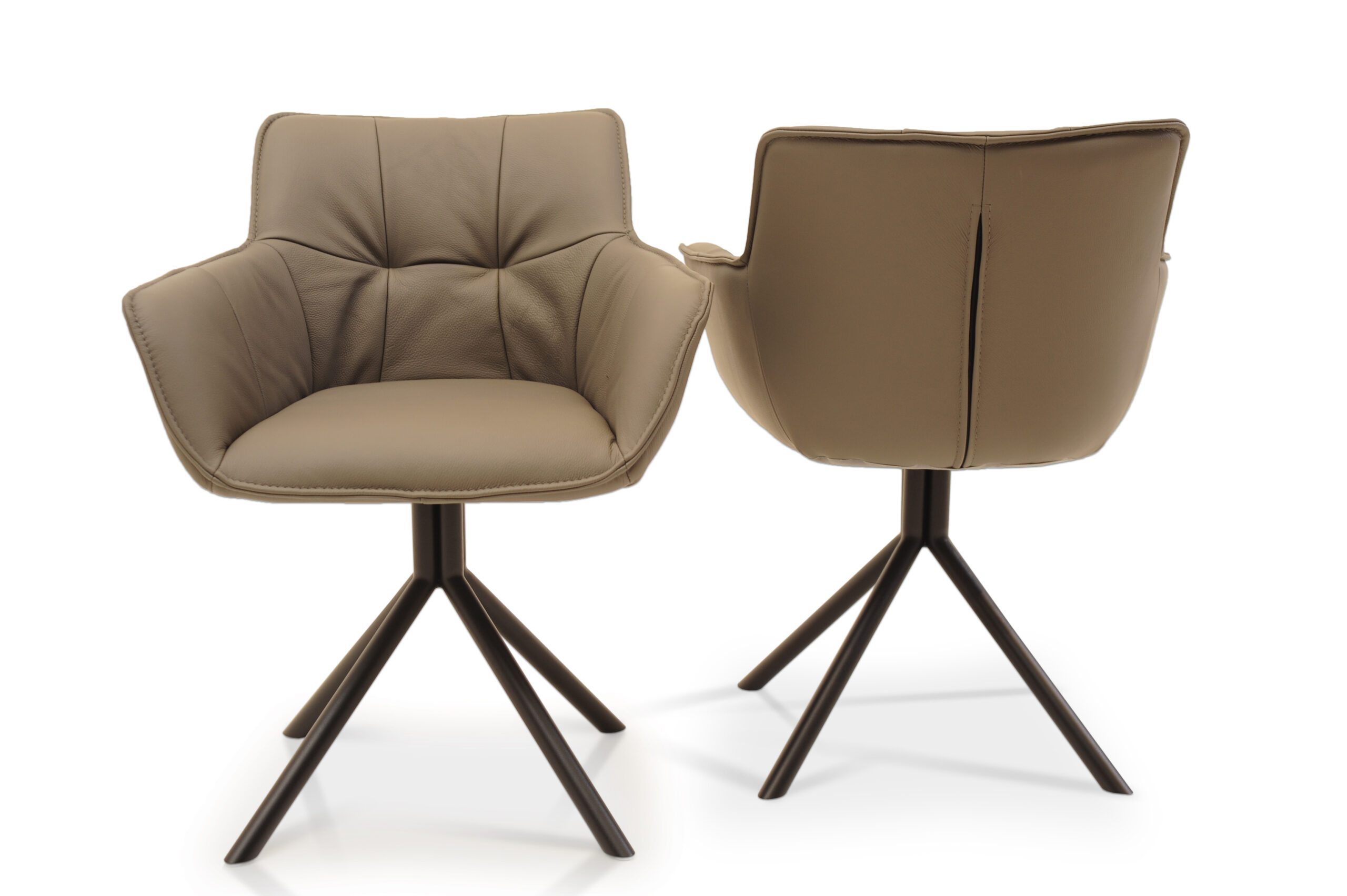 Krzesło TC K15 jest wykonane w skórze naturalnej na metalowych czterech nogach. Może mieć opcję obrotu na innej nodze metalowej lub drewnianej.