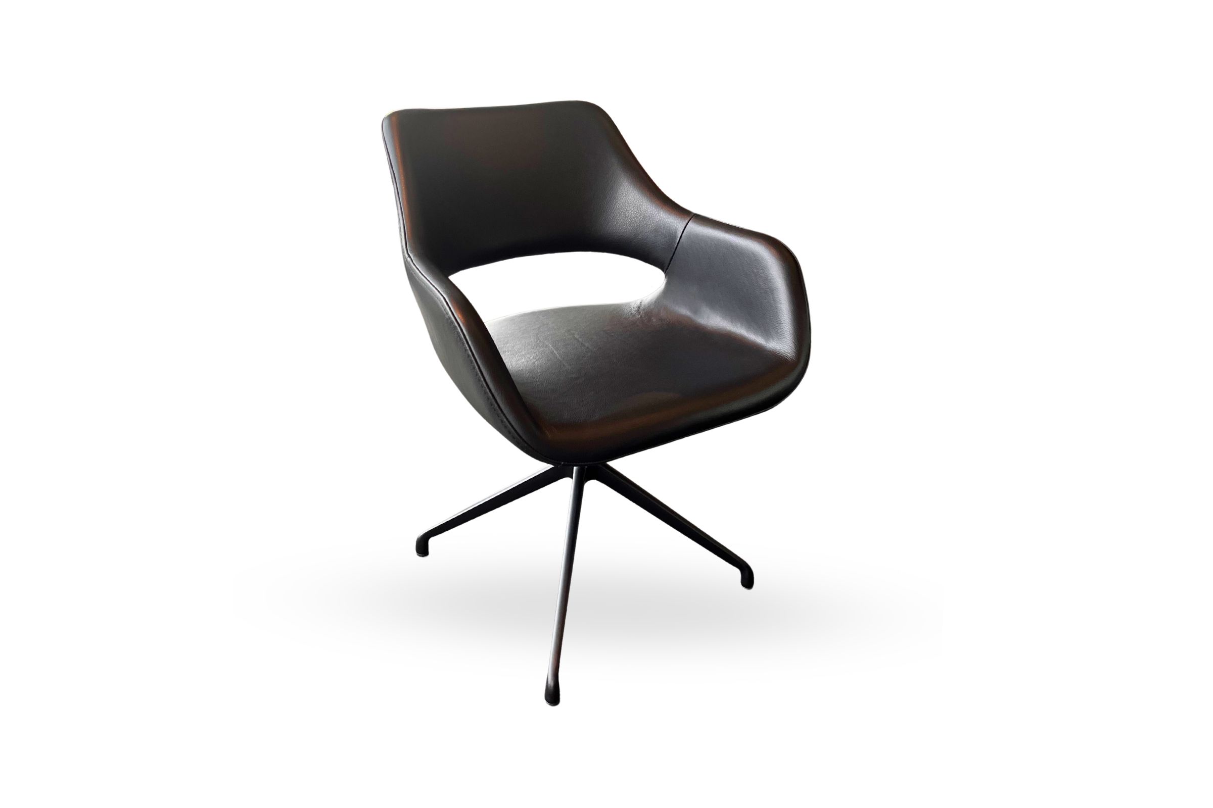 Jego obicie emanuje klasą i trwałością, dodając elegancji do każdego wnętrza. Perfekcyjne wykończenie i dbałość o szczegóły sprawiają, że to krzesło staje się prawdziwą ozdobą przestrzeni. Jego czarna aluminiowa obrotowa noga dodaje nie tylko nowoczesności, ale także stabilności i funkcjonalności.