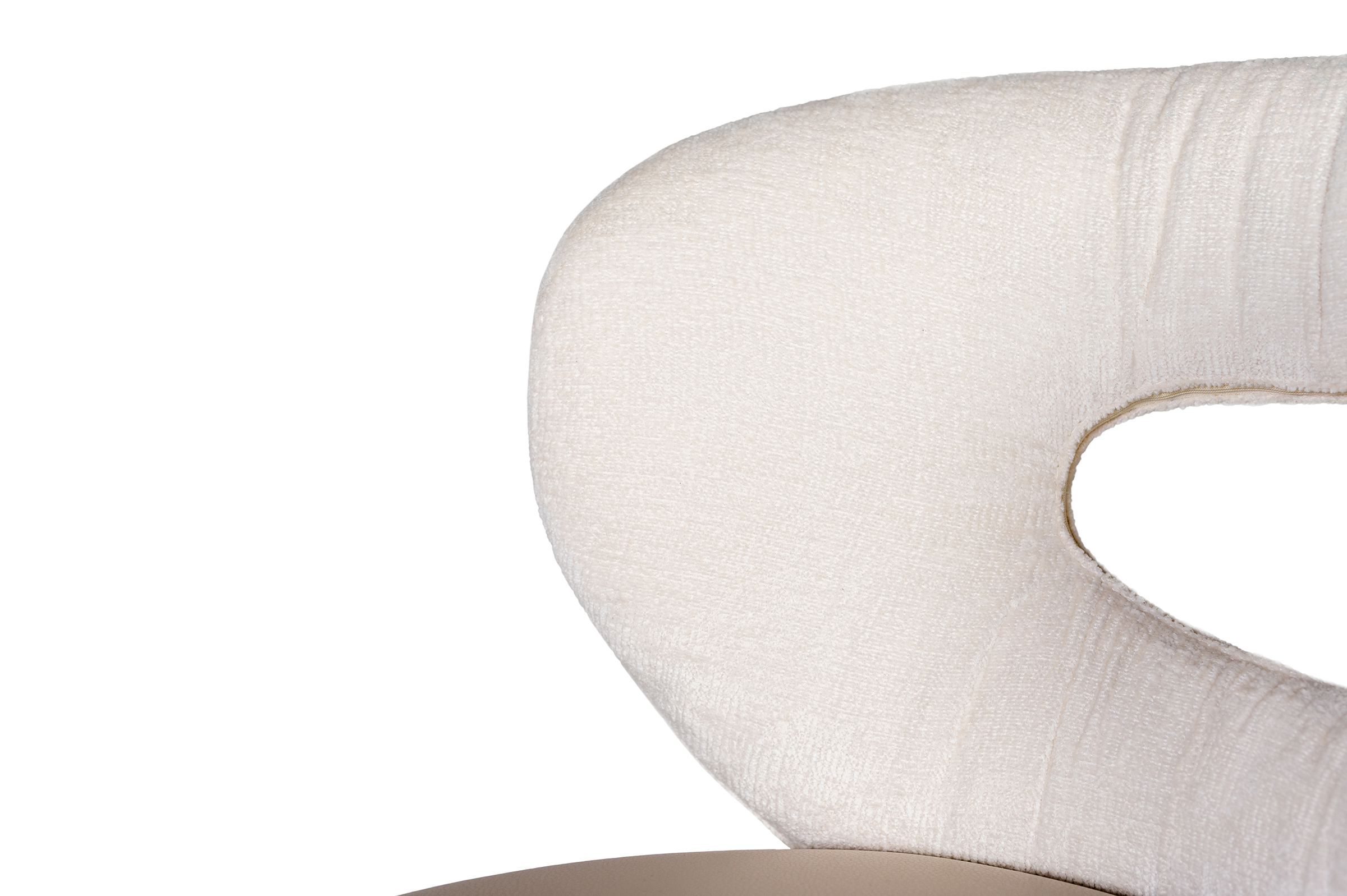 Krzesło posiada otulające oparcie, płynnie przechodzące w podłokietniki oraz wygodne siedzisko, zapewniają komfort wypoczynku. Krzesło zaprojektowane z okrągłym otworem w plecach, dodając dekoracyjne marszczenie na oparciu. Model osadzony na czarnych metalowych nóżkach . Nowoczesna forma doskonale wpasuje się w klasyczne jak i nowoczesne wnętrze, oferując wygodę i niezwykłą formę.