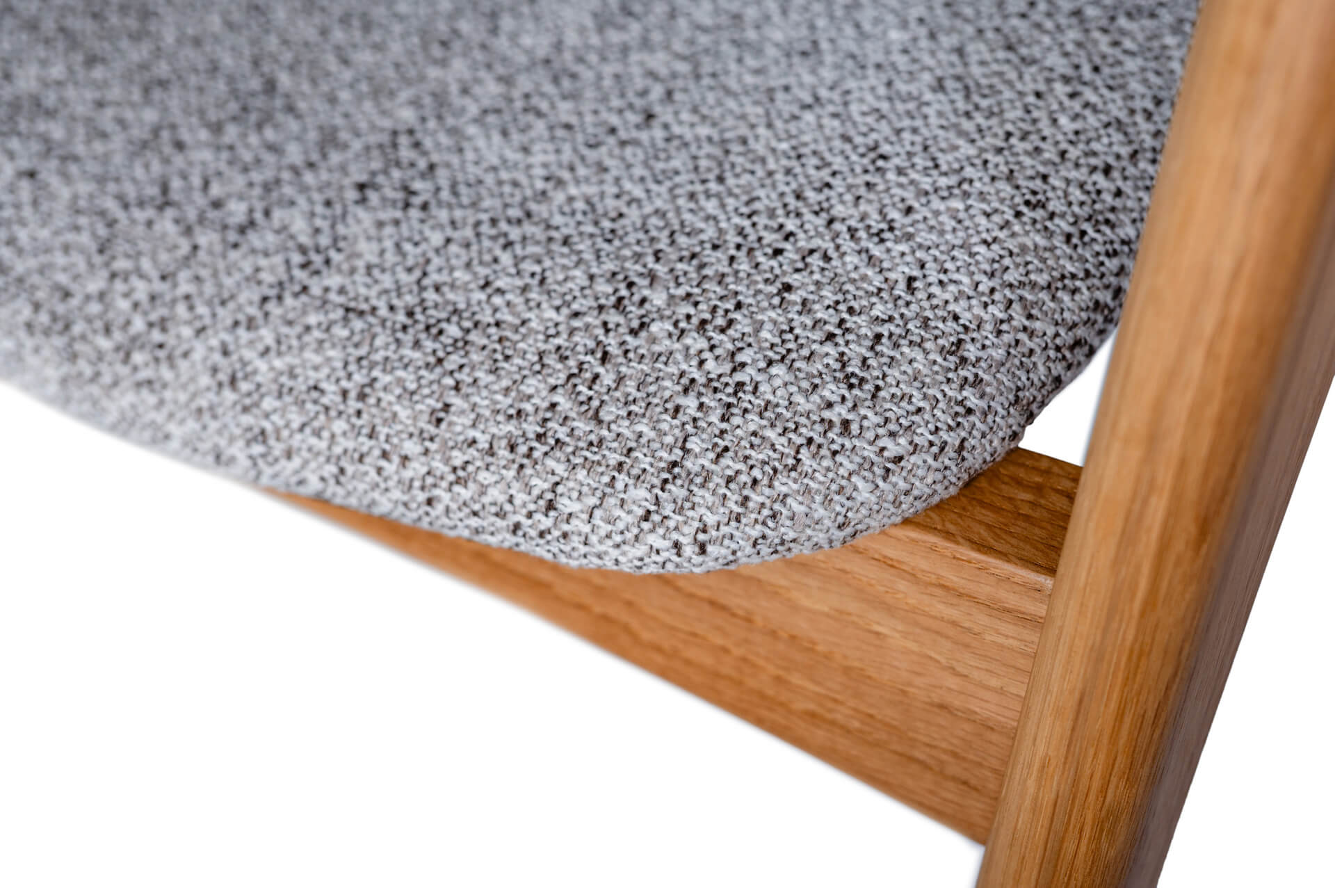 Krzesło K-25 to harmonijne połączenie nowoczesnej formy, precyzyjnego rzemiosła i wygody użytkowania. W całości wykonane z litego drewna dębowego, zachwyca pięknem naturalnego materiału i starannym wyprofilowaniem. Siedzisko pokryte wysokogatunkową tkaniną dodaje mu miękkości i funkcjonalności, dzięki czemu model ten doskonale sprawdzi się zarówno w jadalni, jak i w przestrzeni reprezentacyjnej.