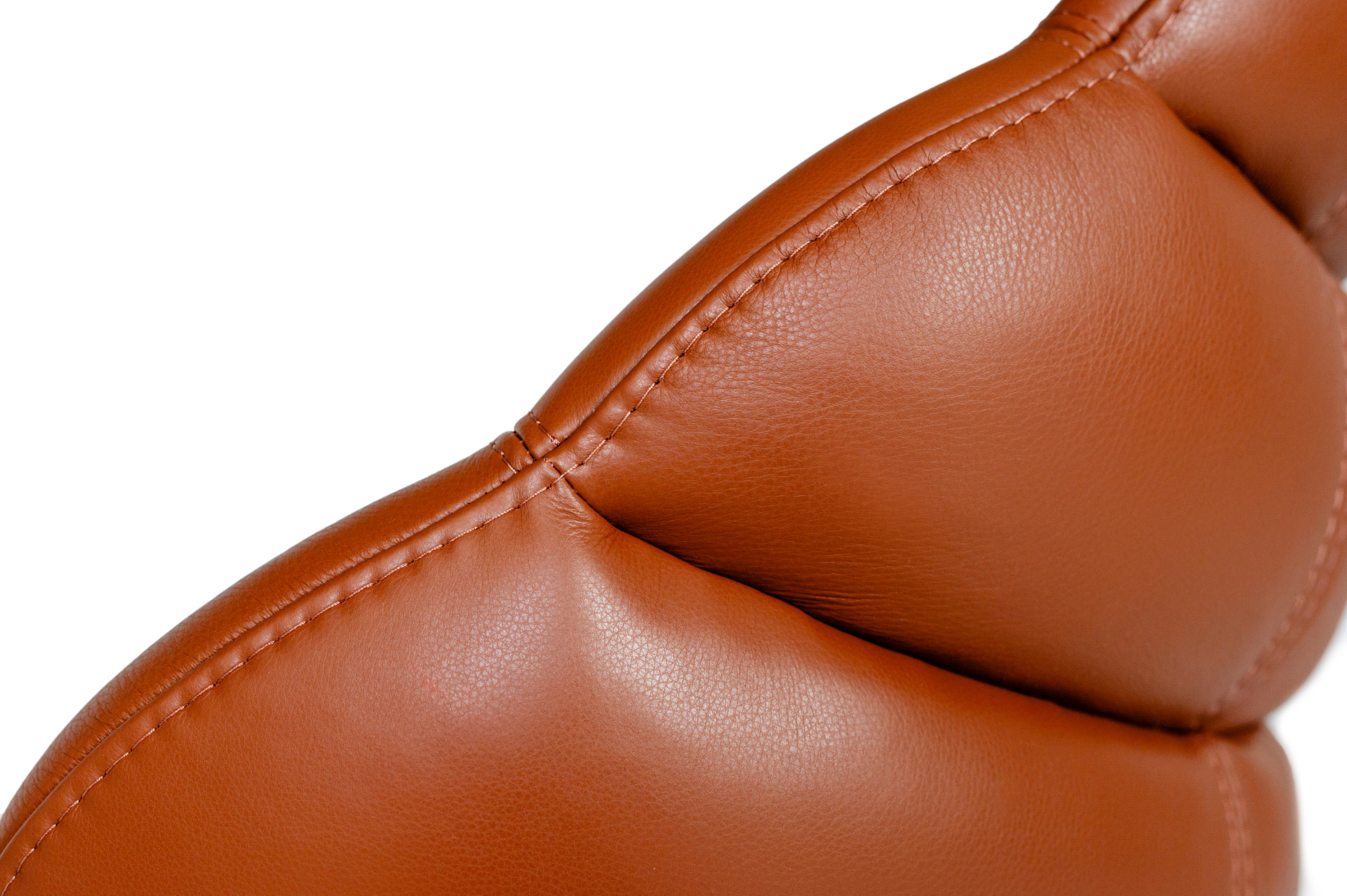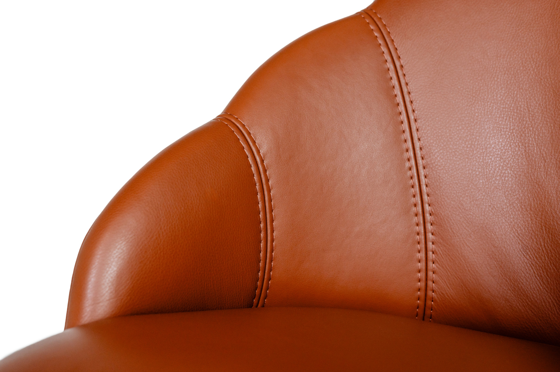 Tapicerowane w całości skórą naturalną S6-207, krzesło zachwyca głębokim, ciepłym odcieniem koniaku. Naturalna skóra o lekko matowym wykończeniu i subtelnej strukturze gwarantuje luksusowy wygląd oraz wyjątkową trwałość. Precyzyjne przeszycia podkreślają jego kształt, dodając mu wyrazistości i charakteru.