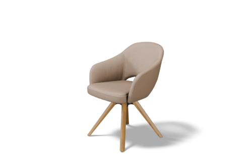 Obrót działa z lekkim, kontrolowanym oporem – jest płynny i delikatny, a jednocześnie stabilny i precyzyjny. Po wstaniu użytkownika krzesło samoczynnie wraca do pierwotnej pozycji, co czyni je idealnym rozwiązaniem do jadalni oraz przestrzeni reprezentacyjnych.