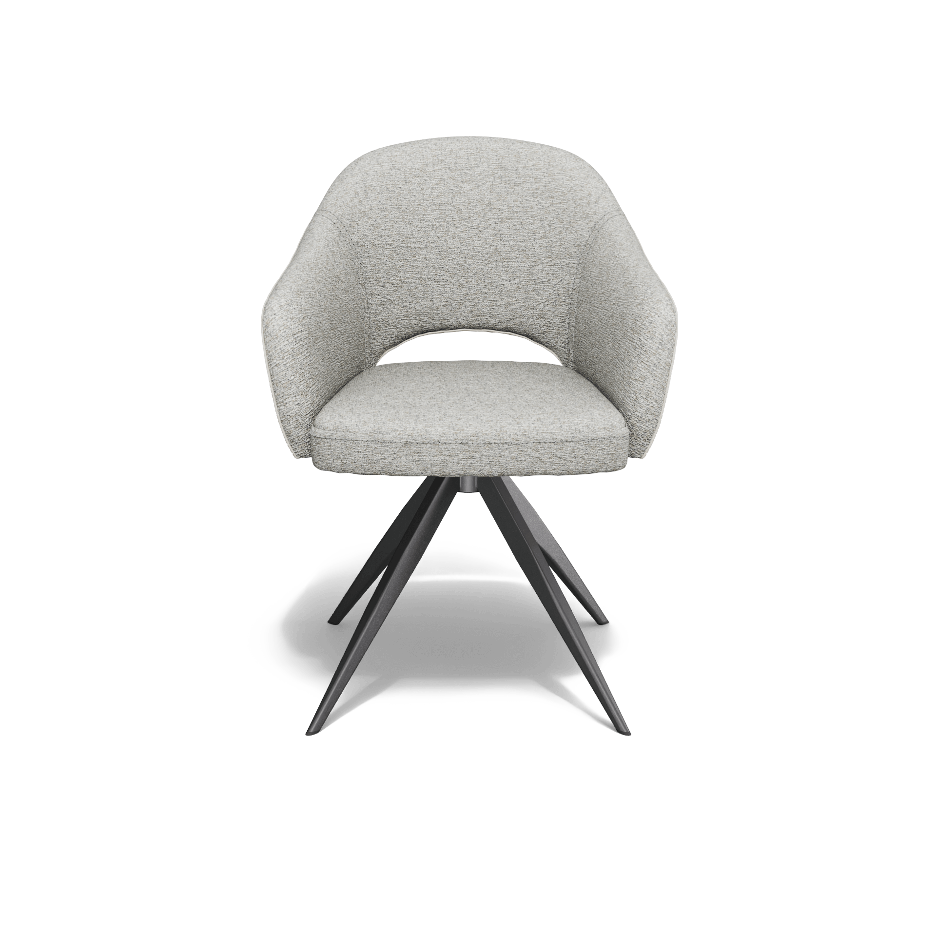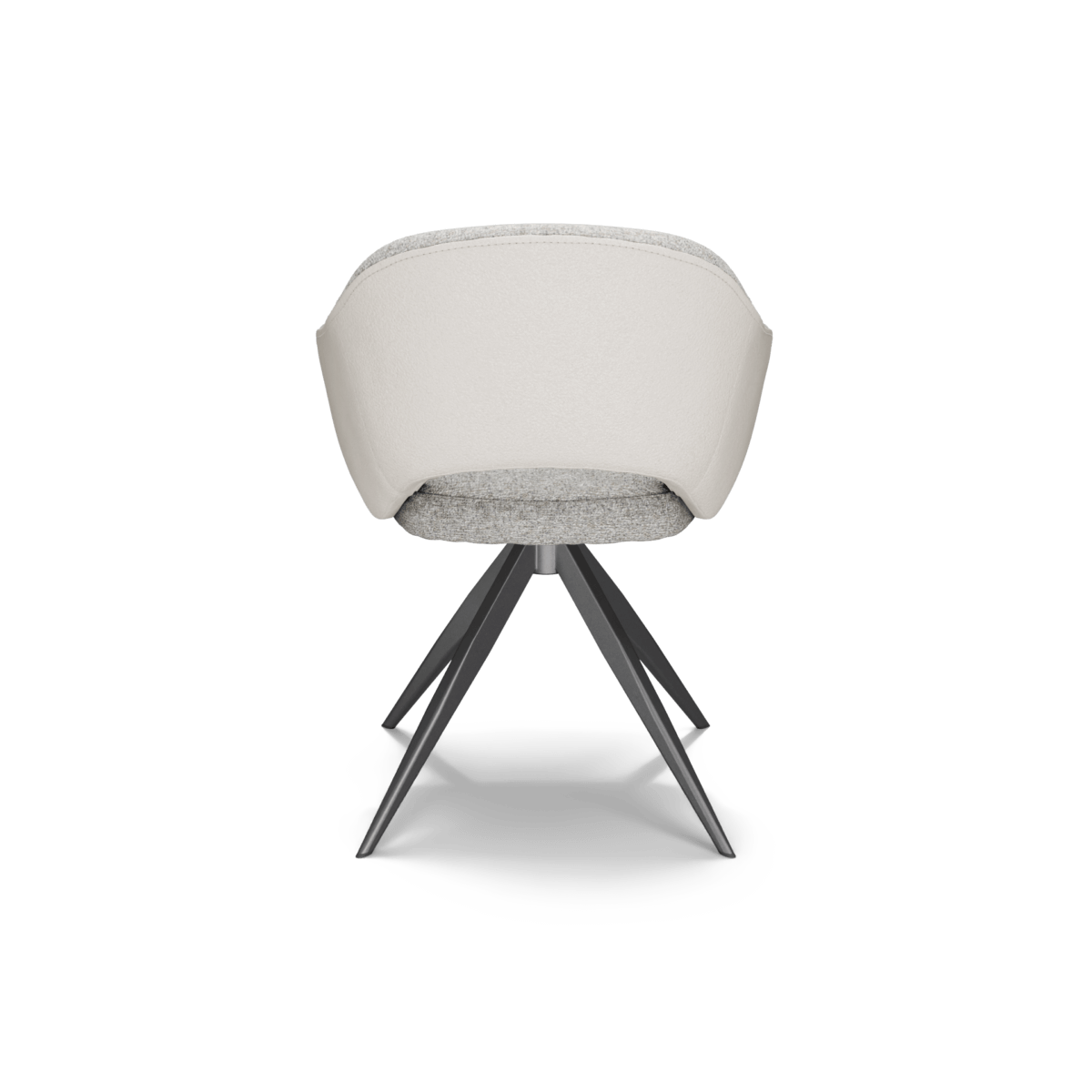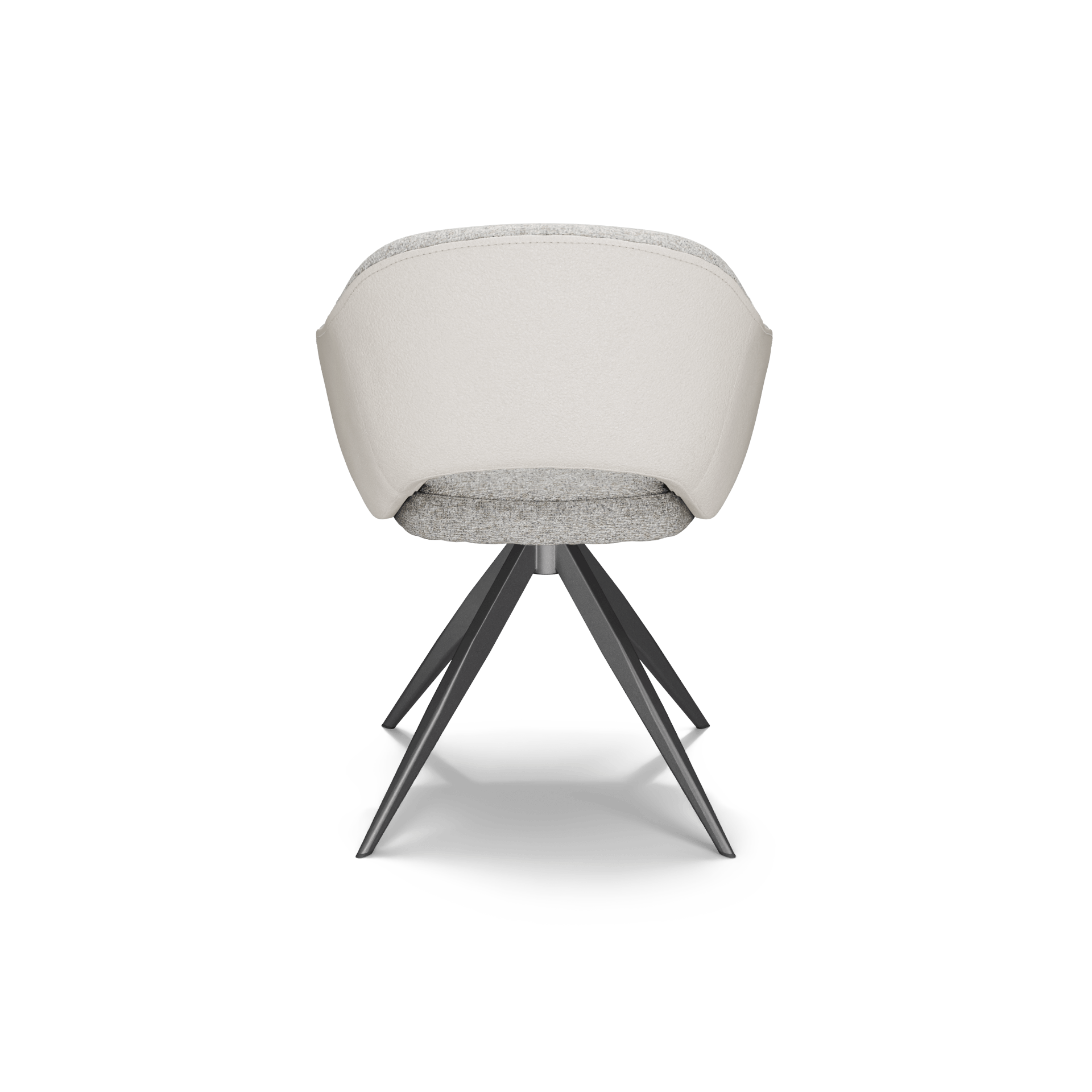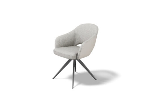 Tapicerowane siedzisko o płynnej, otulającej linii zapewnia doskonałe podparcie pleców i ramion. Zintegrowane podłokietniki oraz odpowiednio wyprofilowane oparcie sprawiają, że krzesło jest niezwykle wygodne zarówno podczas krótkiego użytkowania, jak i dłuższego siedzenia przy stole czy w przestrzeni roboczej. Starannie wykonane przeszycia oraz dopracowane proporcje podkreślają wysoką jakość wykonania i nowoczesny charakter modelu.