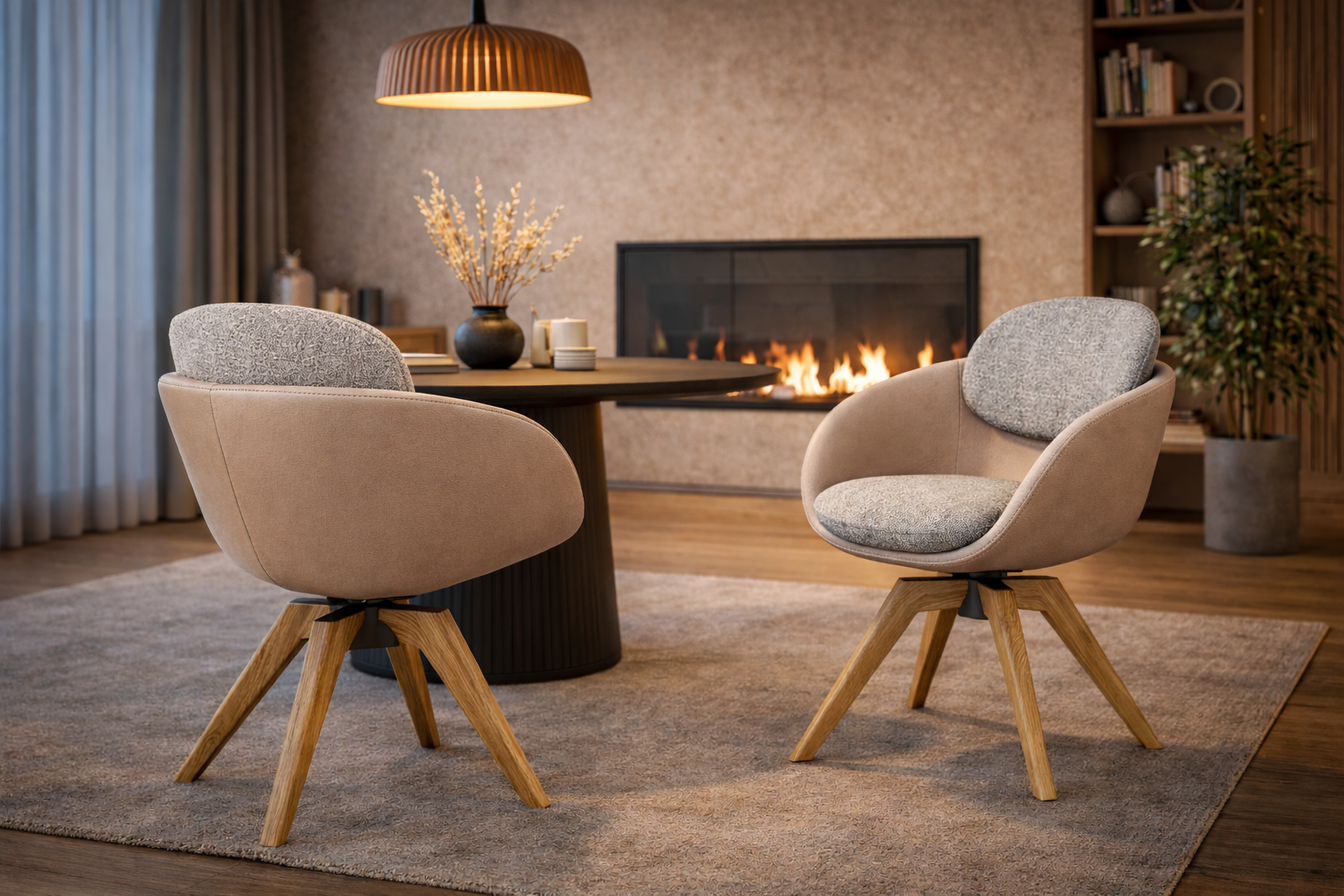 Model K-31 w wersji na masywnej, dębowej nodze obrotowej to harmonijne połączenie naturalnych materiałów, nowoczesnej formy i wysokiej ergonomii. Wyrazista, a jednocześnie miękka linia siedziska nadaje krzesłu ponadczasowy charakter, który doskonale wpisuje się zarówno w nowoczesne, jak i bardziej stonowane, eleganckie wnętrza.