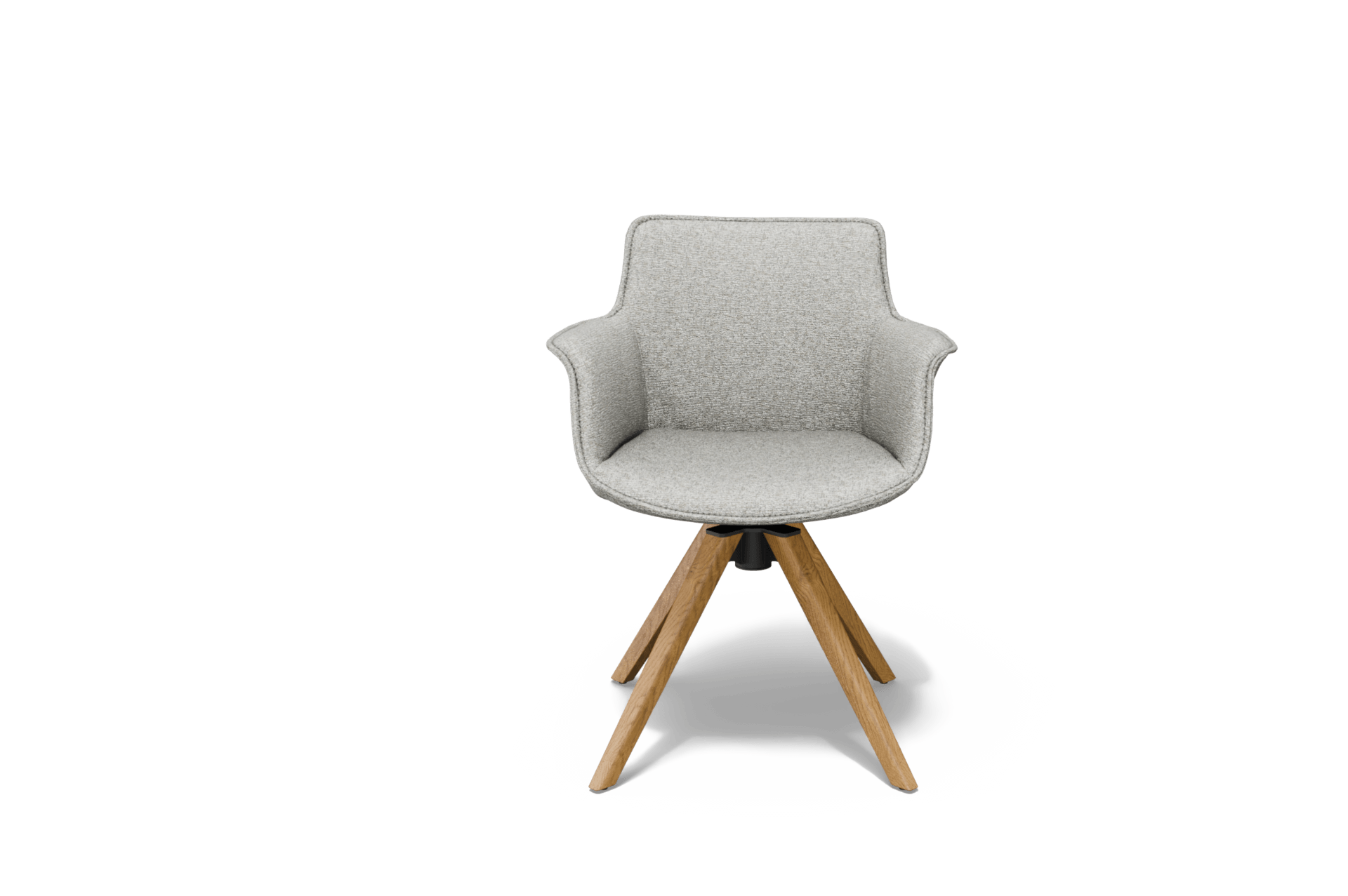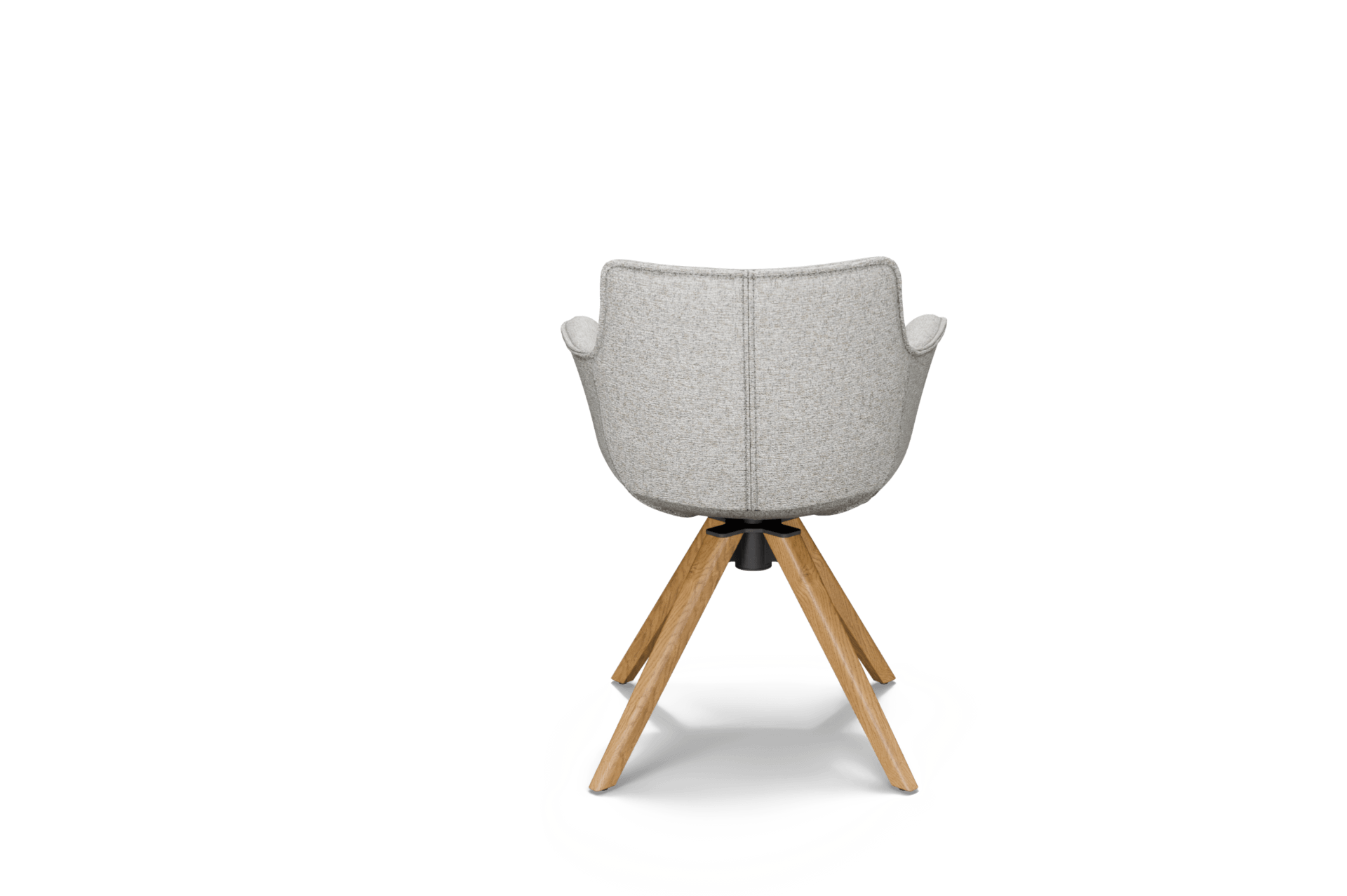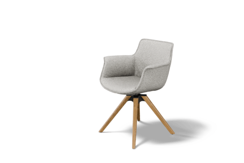 Krzesło osadzone jest na czteroramiennej, dębowej nodze obrotowej, która łączy elegancki wygląd z solidną konstrukcją. Zastosowany mechanizm obrotowy 360° zwiększa funkcjonalność i komfort użytkowania, jednocześnie zachowując estetyczny porządek wokół stołu.