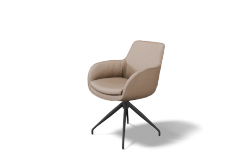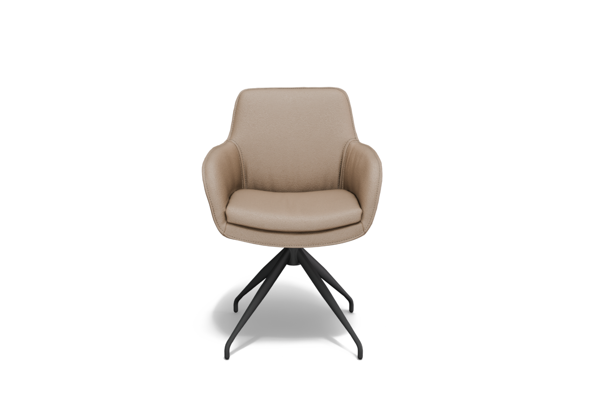Model K-35 w wersji na metalowej nodze 1285 to połączenie wyrazistej, masywnej bryły z elegancką, nowoczesną podstawą. Krzesło wyróżnia się głębokim, kubełkowym siedziskiem oraz zintegrowanymi podłokietnikami, które zapewniają wysoki komfort i stabilne podparcie podczas codziennego użytkowania.