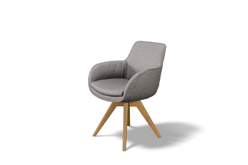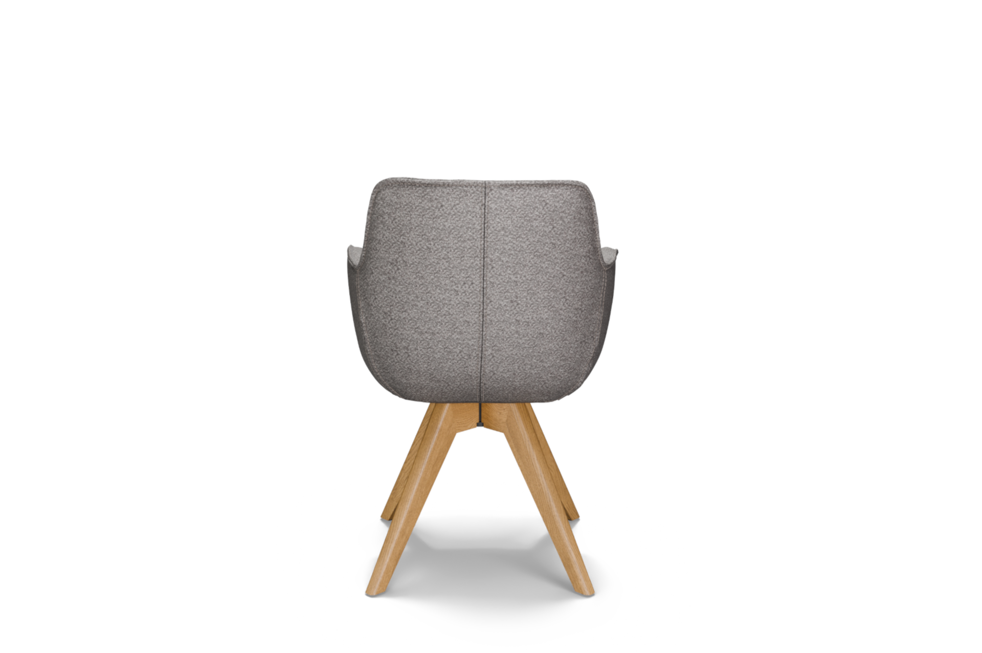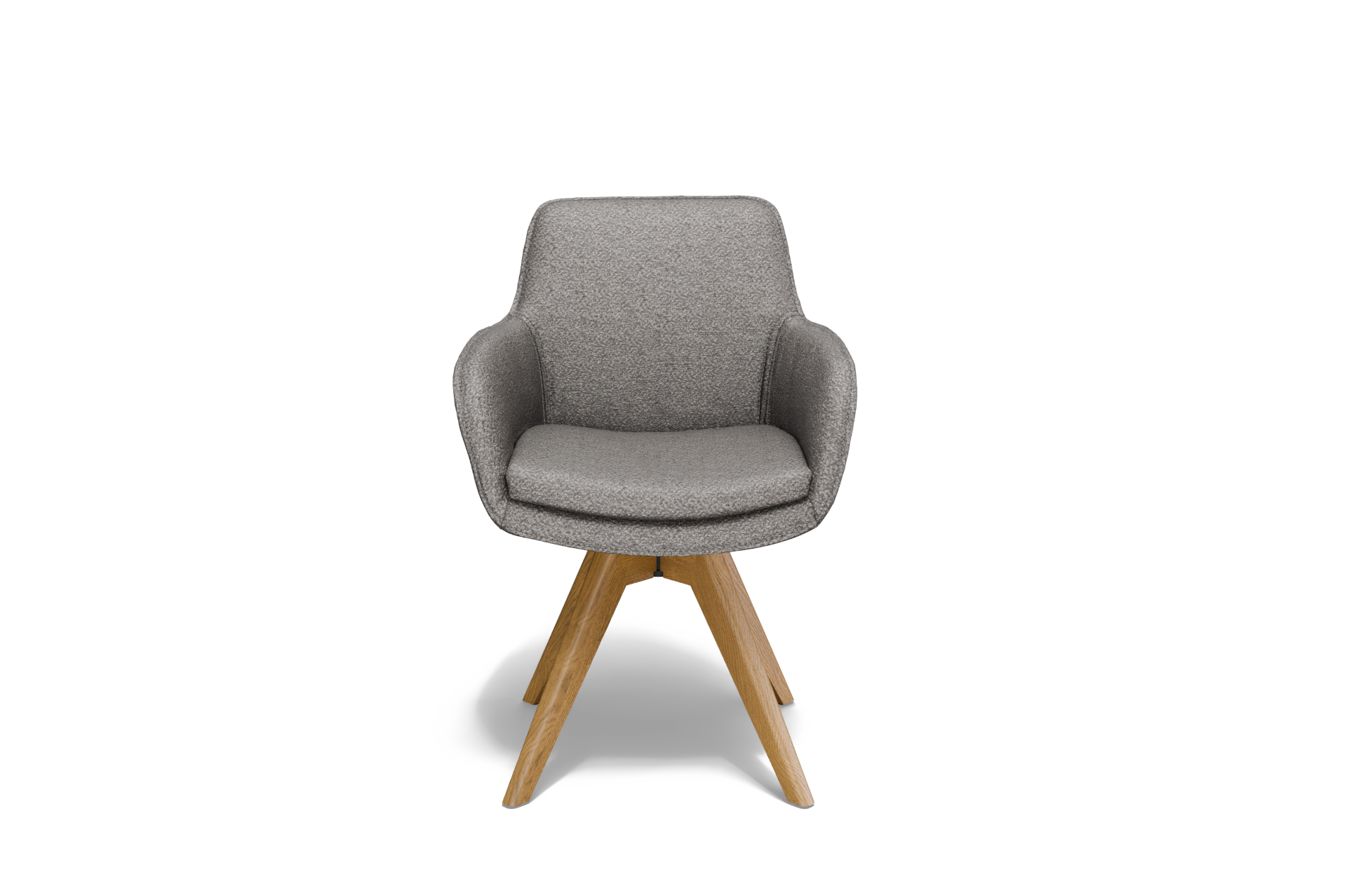Krzesło K-35 to połączenie nowoczesnej formy, wysokiego komfortu siedzenia oraz naturalnych materiałów. Model osadzony jest na stabilnej, czteroramiennej nodze wykonanej z litego drewna dębowego w naturalnym kolorze, która nadaje całości ciepły, ponadczasowy charakter i doskonale wpisuje się zarówno w nowoczesne, jak i klasyczne wnętrza.