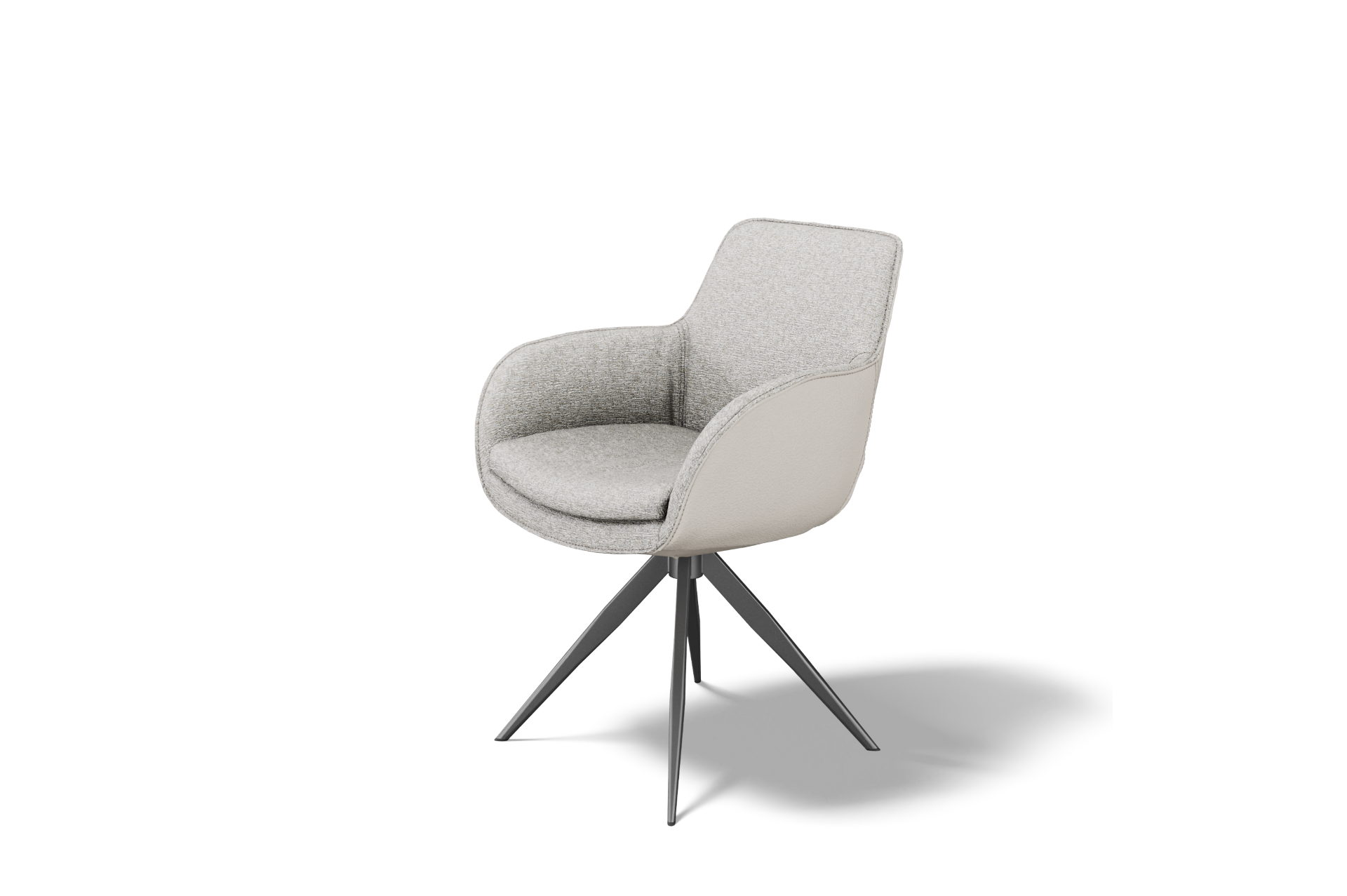 Krzeslo K 35 na metalowej nodze z obrotem z podlokeitnikami biala skora i jasna tkanina fibreguard polski producent mebli tapicerowanych 3