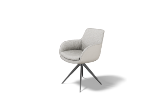 Model wyposażony jest w mechanizm obrotowy z funkcją auto-return, dzięki czemu po wstaniu krzesło samoczynnie wraca do pozycji wyjściowej, zachowując estetyczny porządek przy stole.