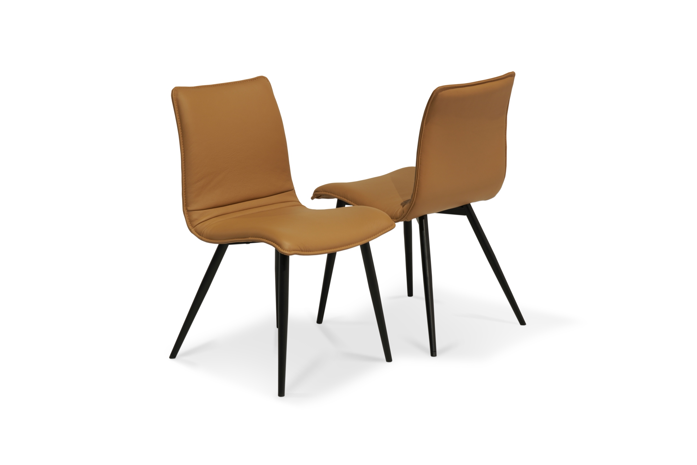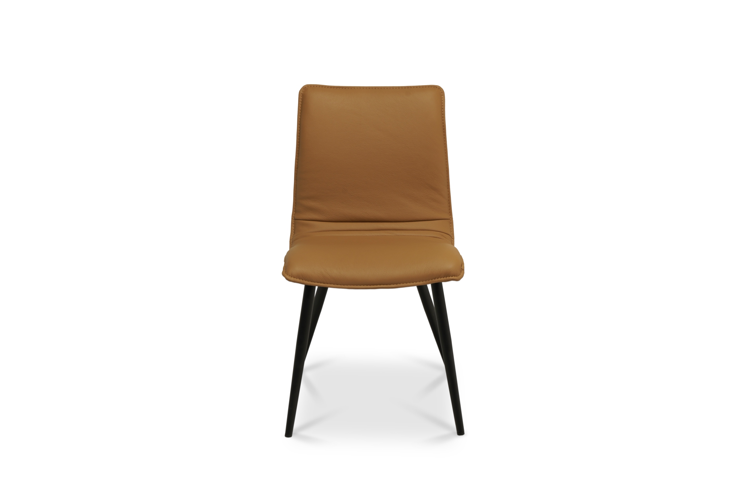 Krzesło na metalowych nogach z profilowanym oparciem wykonane z naturalnej skóry bydlęcej sprowadzanej z Włoch.