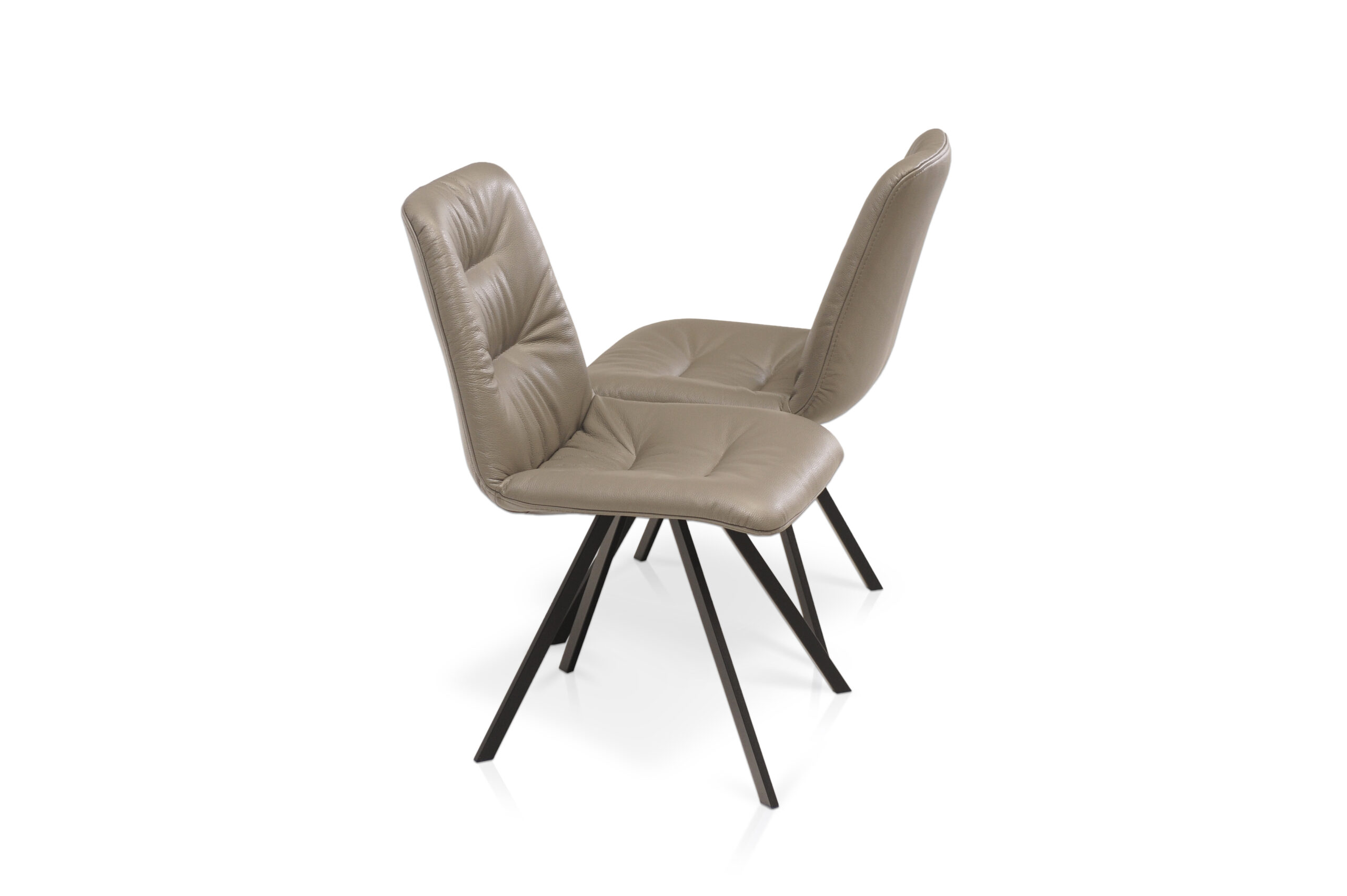 Wygodne skórzane krzesło z wyraźnymi przeszyciami na metalowych nogach. Idealnie nadają się do salonu oraz kuchni w stylu Loft bądź industrialnym.