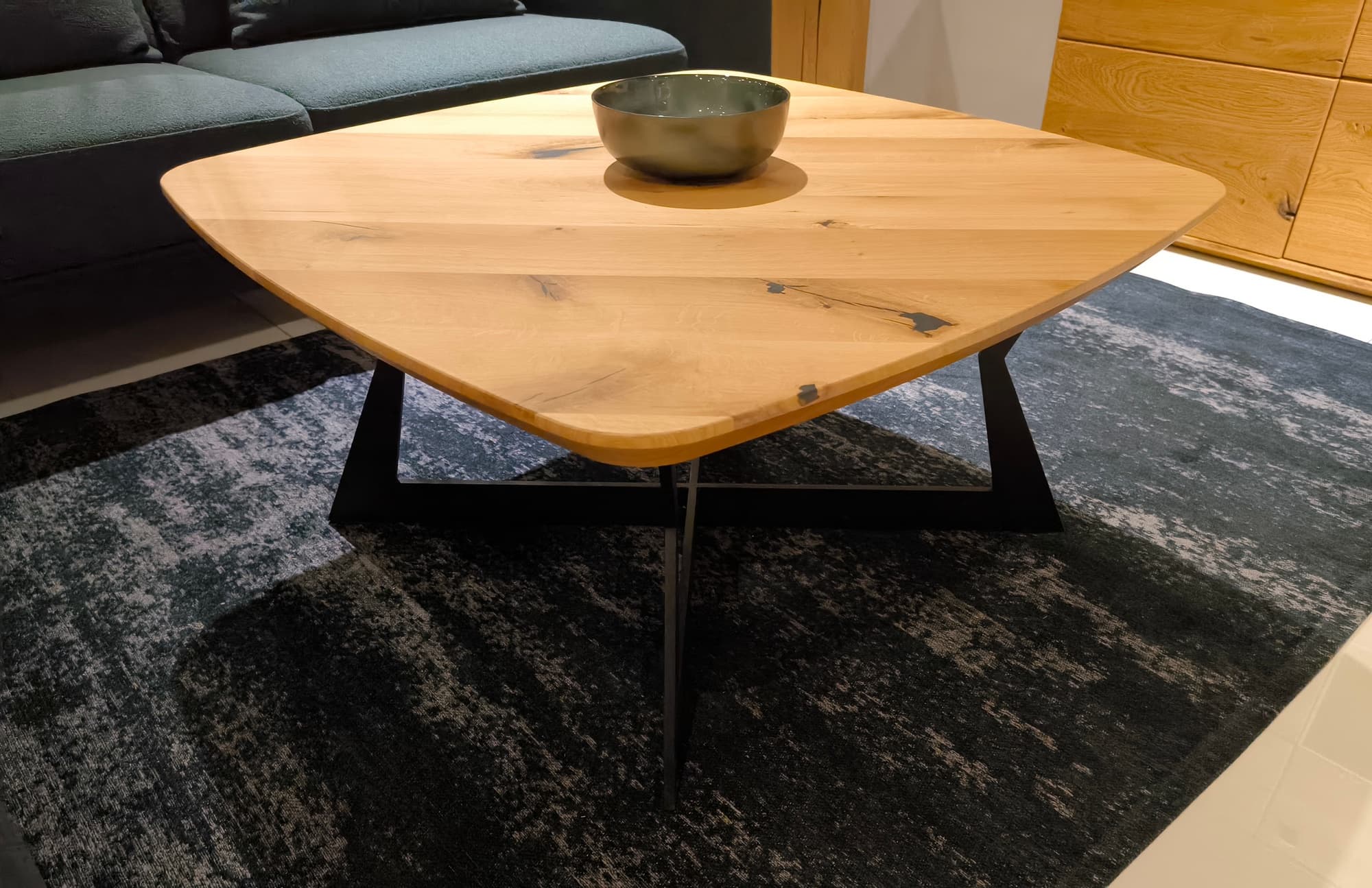 Stolik B23 z blatem z litego drewna o wymiarze 90/90 cm
