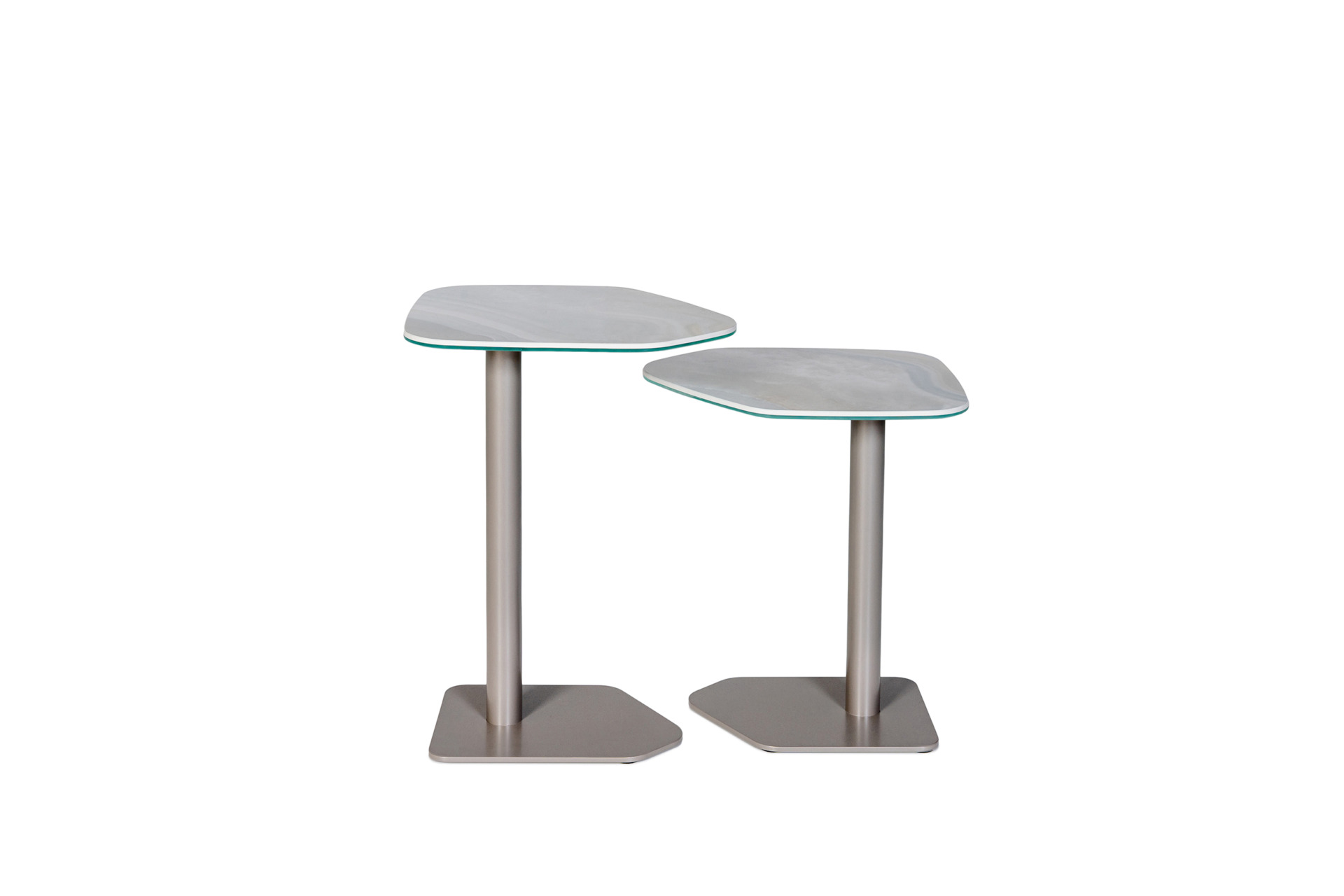 Modele B52A i B52B to eleganckie stoliki pomocnicze, które zachwycają lekką, nowoczesną linią i uniwersalnym charakterem. Blaty wykonane są ze spieku kwarcowego w kształcie pięciokąta, którego nieregularna forma nadaje im rzeźbiarski i wyjątkowy wygląd. Pokazany egzemplarz posiada blat ze spieku Onice Grigio, wyróżniającego się subtelnym rysunkiem kamienia w odcieniach szarości. Nogi są w kolorze FP 7320 Horizon. Cena dotyczy zestawu B52A i B52B.