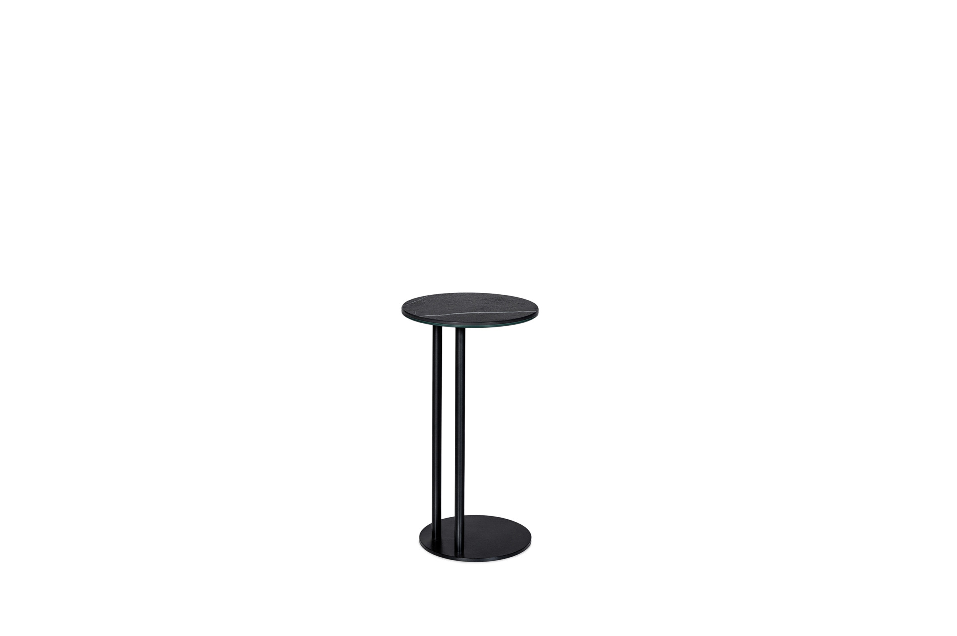 Model B59 to propozycja lekkich i subtelnych stolików pomocniczych, które zachwycają minimalistyczną formą i nowoczesnym wykończeniem. Okrągły blat o średnicy 28 cm wykonany został ze spieku kwarcowego – materiału niezwykle trwałego, eleganckiego i odpornego na codzienne użytkowanie. Smukła metalowa noga osadzona na stabilnej podstawie dodaje całości lekkości, tworząc mebel, który doskonale sprawdzi się zarówno przy sofie, narożniku, jak i w sypialni w roli stolika nocnego.
