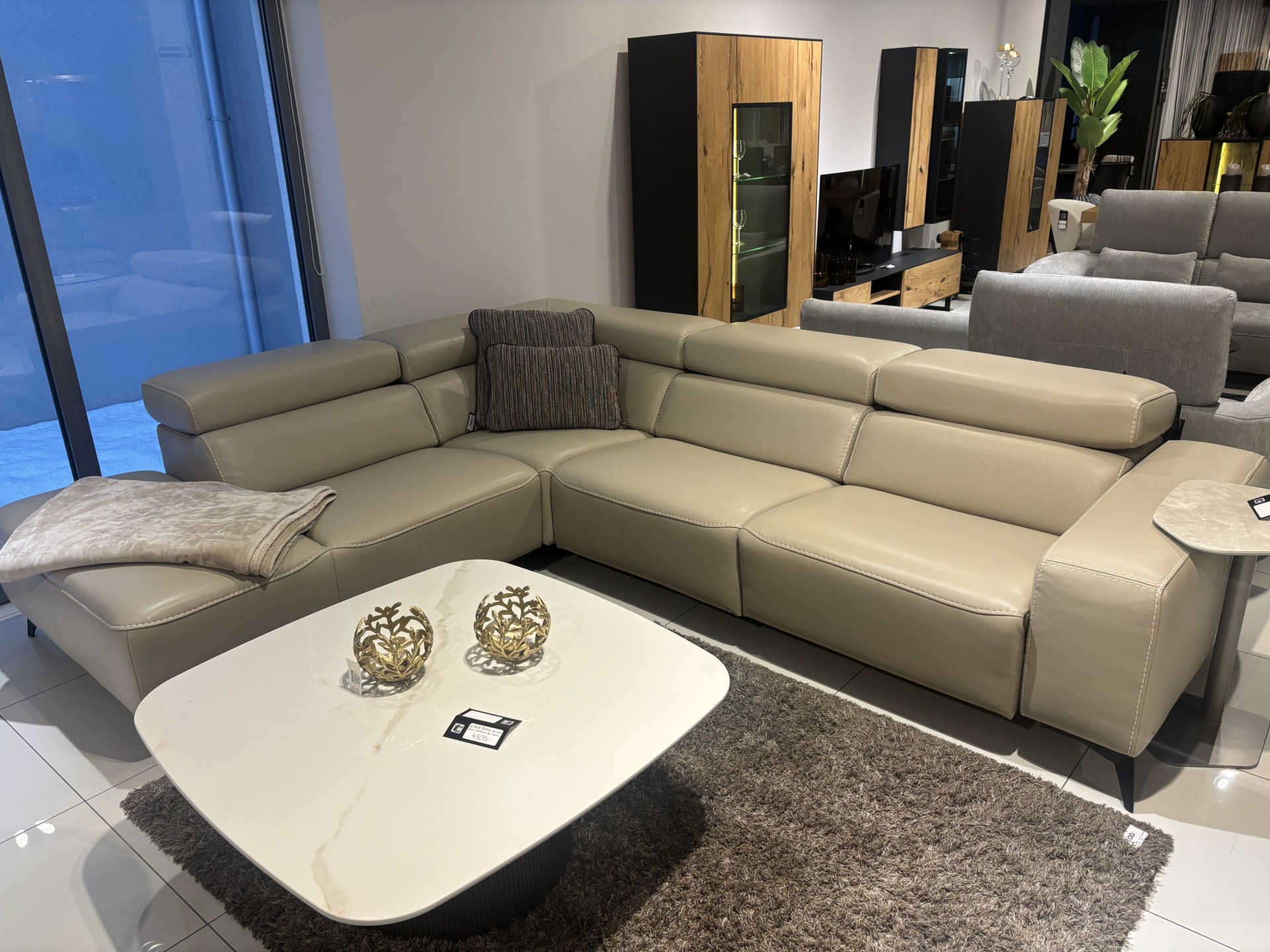 LONGO – BEŻOWY NAROŻNIK ZE SKÓRY NATURALNEJ Z RELAKSEM ELEKTRYCZNYM -15% 13.230 ZŁ