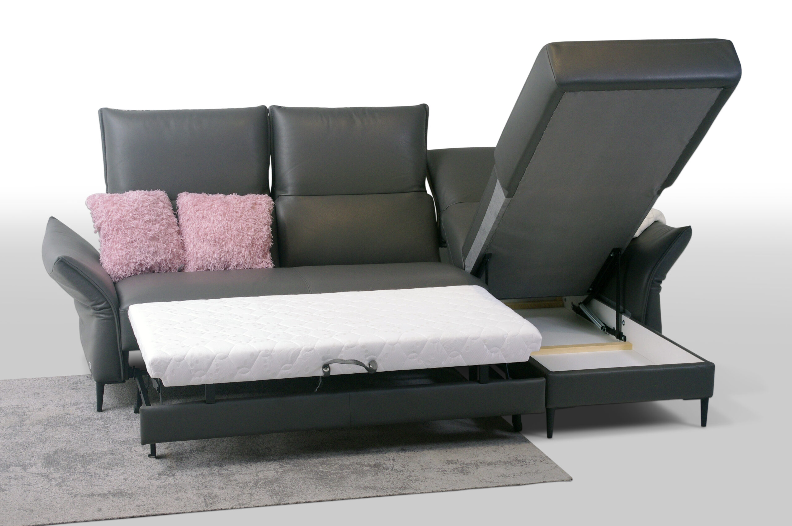 Mini to niewielki narożnik z funkcją sapania i pojemnikiem na pościel. Idealny do małych mieszkań.