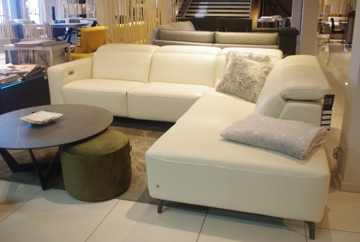 Elegancki nowoczesny narożnik wykonany z grubej, miękkiej białej skóry S4 TC 01.