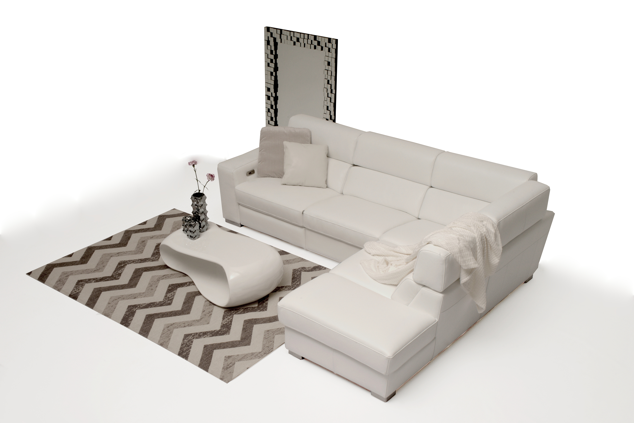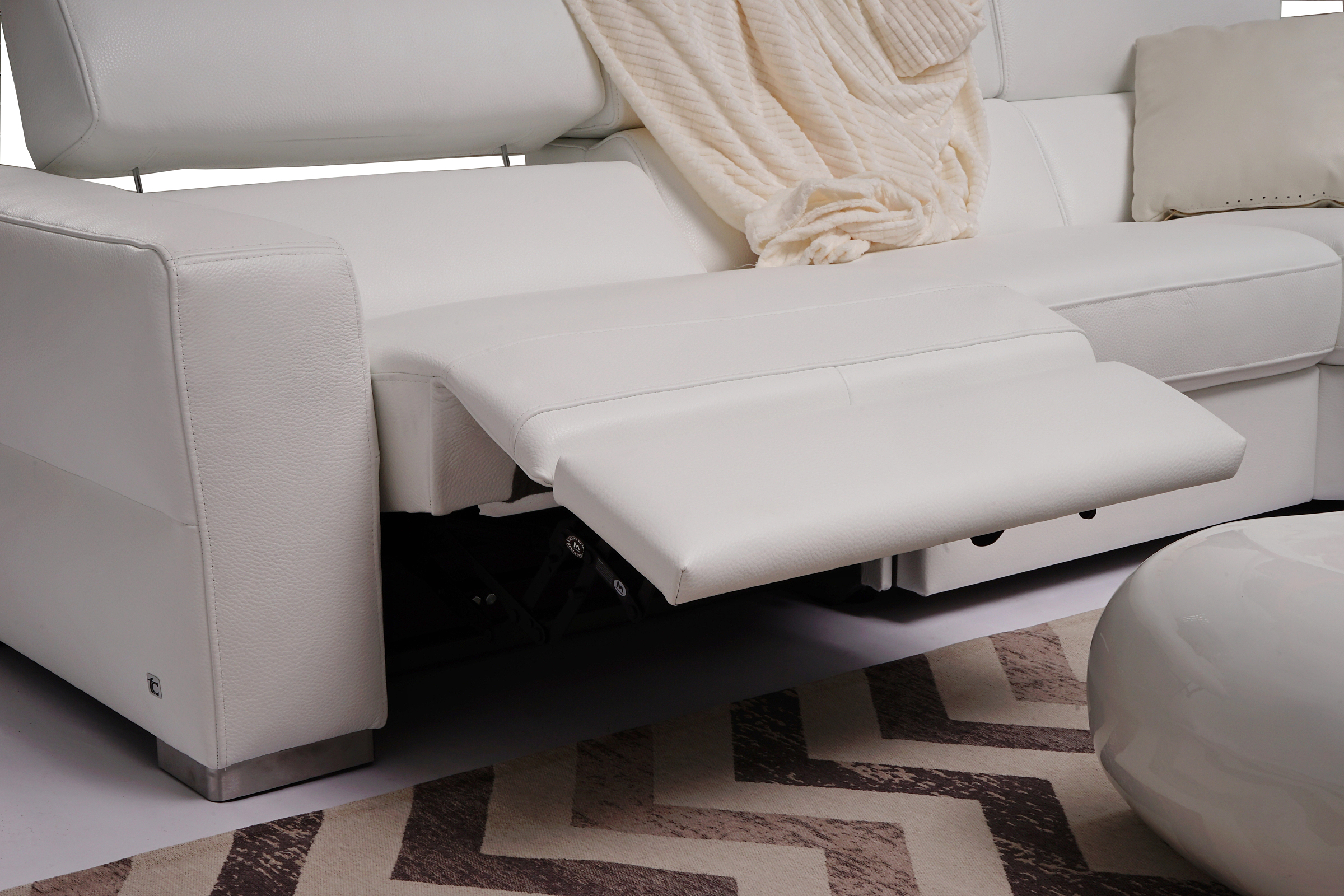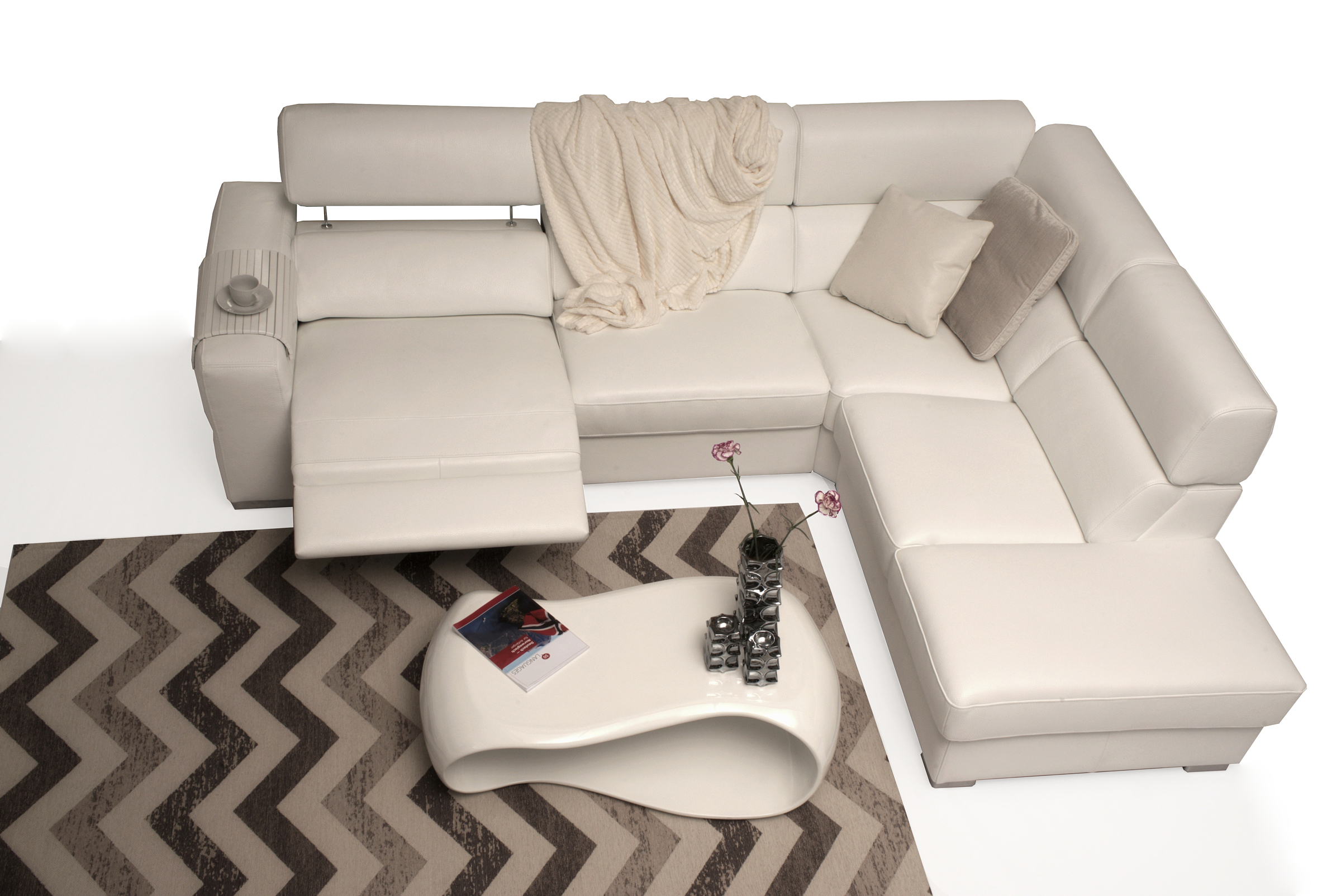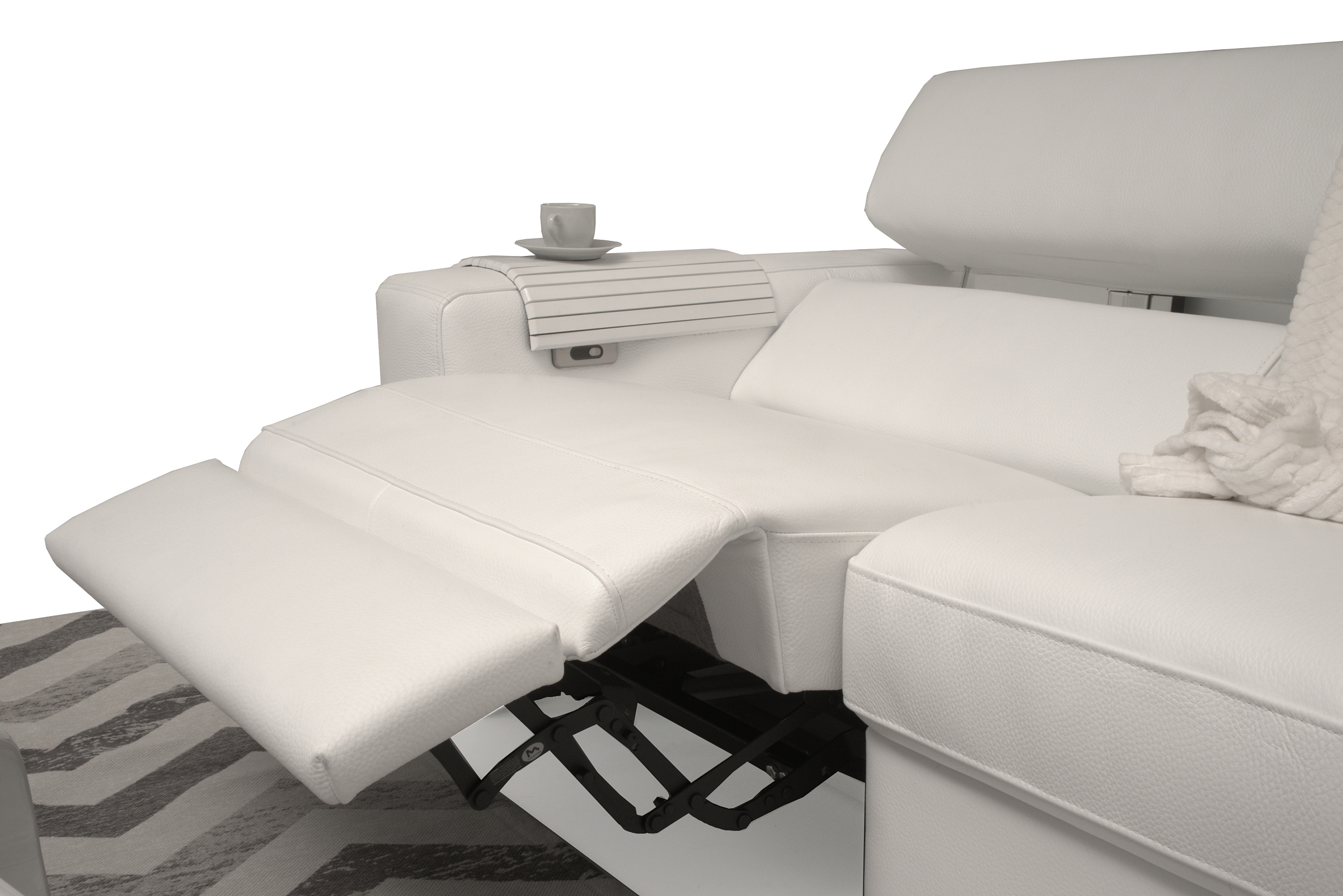 Narożnik Giano z funkcją relax wykonany w grubej białej  skórze naturalnej